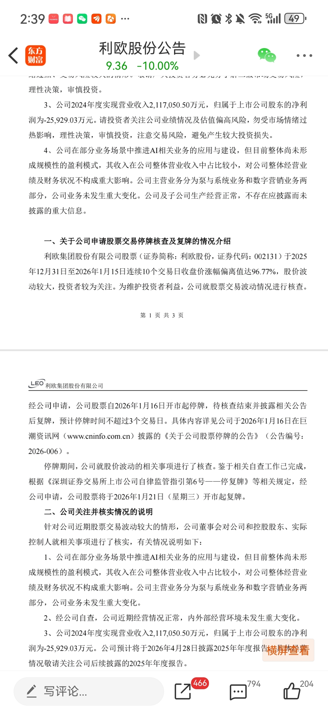 $利欧股份(SZ002131)$ 公告也说了偏离值96.77,那为什么还触发了严重异动