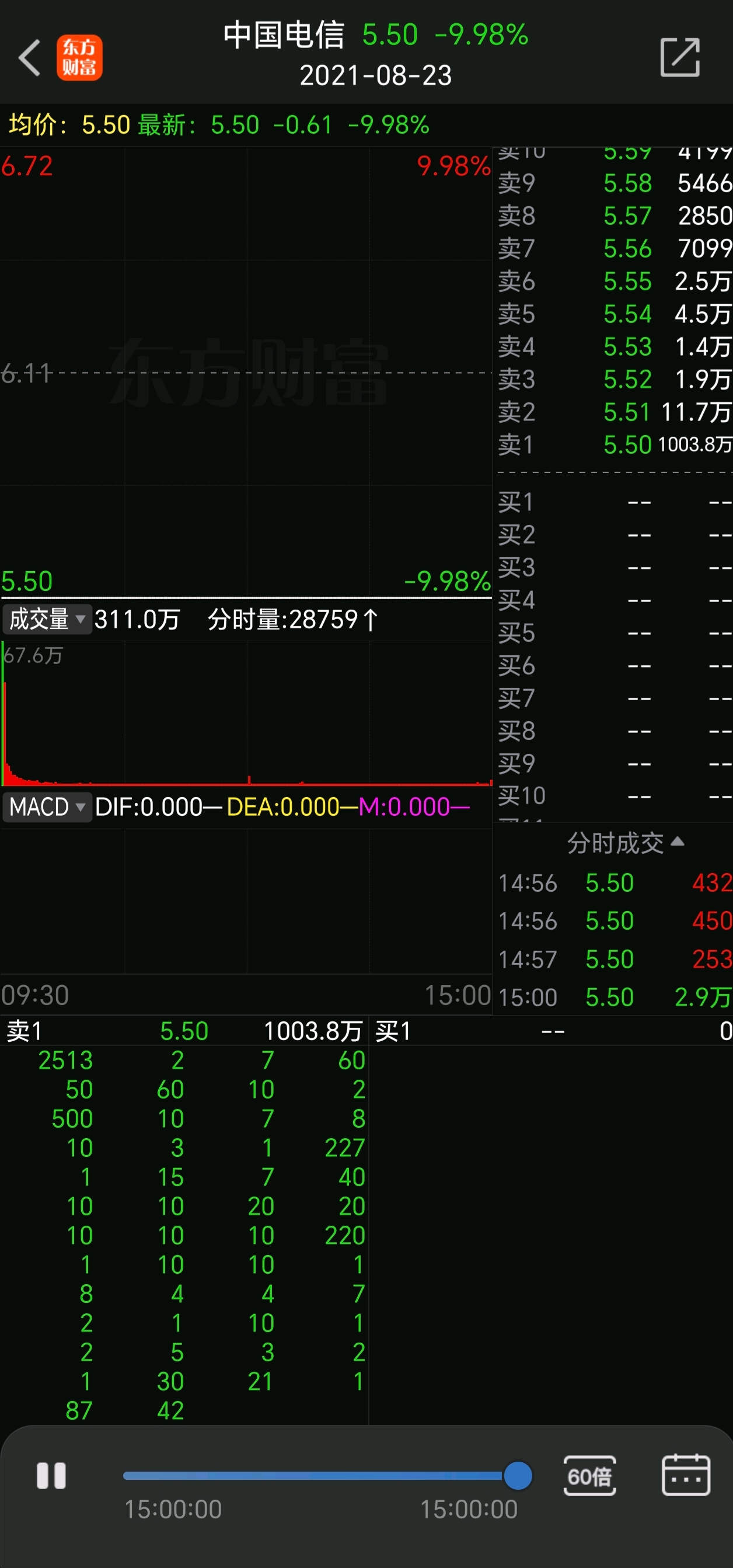 A股的第一个千万封单是电信,但也只是最后几分钟加到千万封单,而你不一样,你天生就