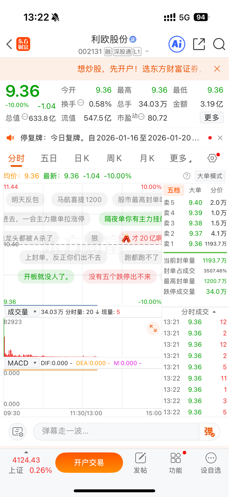 $利欧股份(SZ002131)$ 我也算是历史的亲历者。史上跌停封单量第一,跌停封单金额第二!信任就是被这样磨灭的。