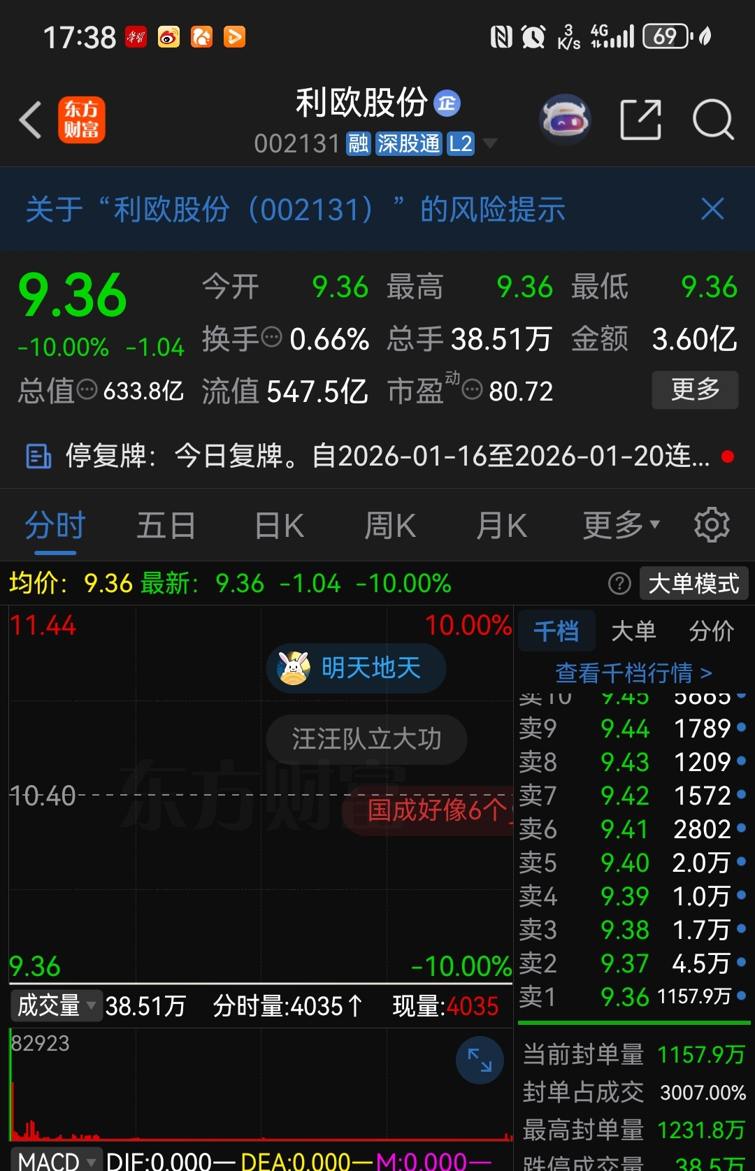 $利欧股份(SZ002131)$ 一千多万封单,活就见啊,是散户踩踏还是主力清仓压盘?
