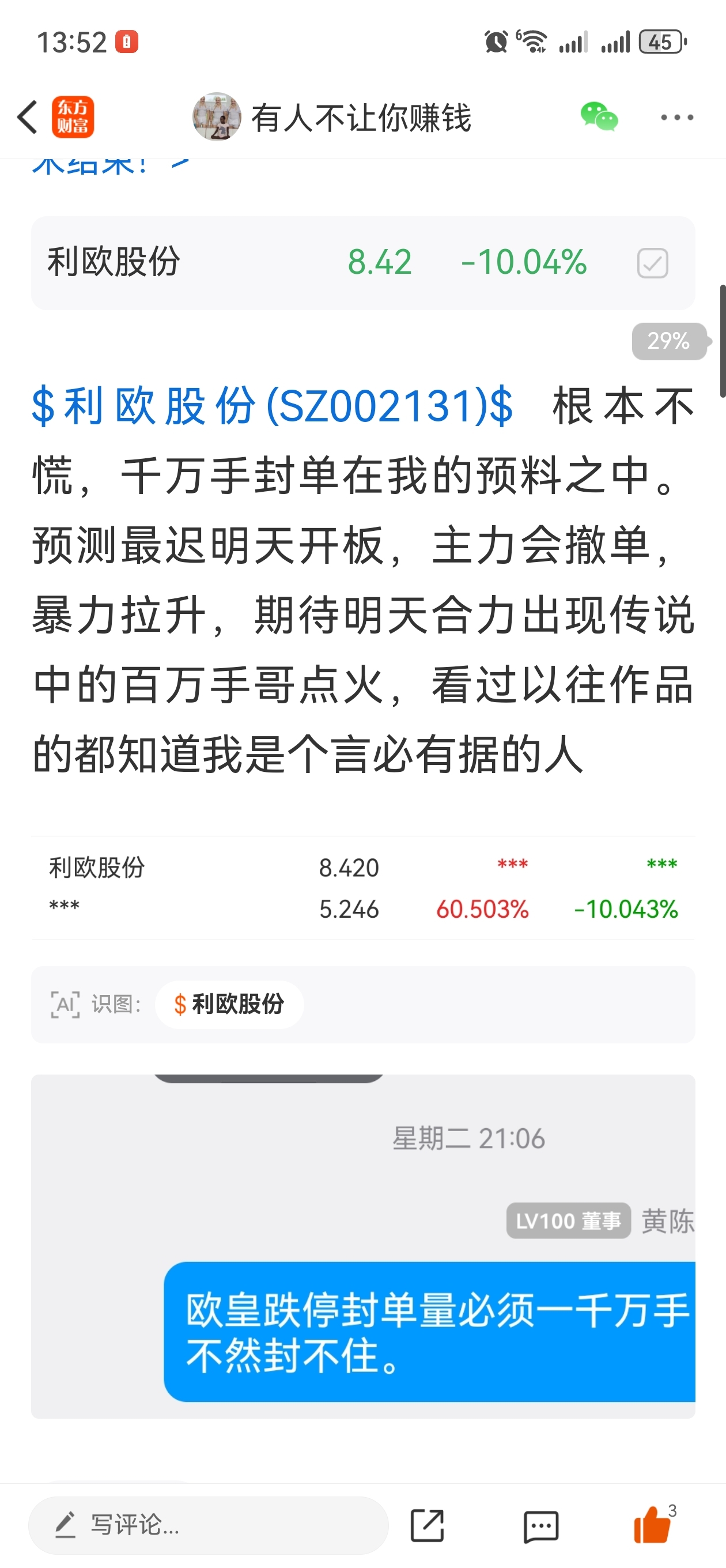 温馨提示: 1.根据《证券法》规定,禁止编造、传播虚假信息或者误导性信息,扰乱证券市场;2.用户在本社区发表的所有资料、言论等仅代表个人观点,与本网站立场无关,不对您构成任何投资建议。用户应基于自己的独立判断,自行决定证券投资并承担相应风险。《东方财富社区管理规定》