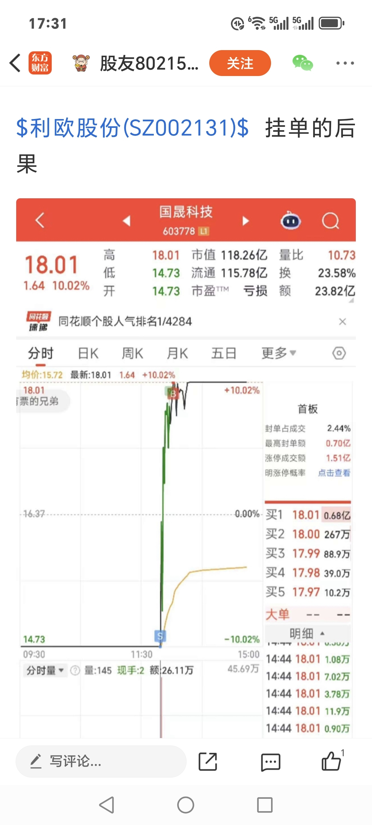 利欧已两个跌停了,有必要挂吗,这是国晟科技挂了的,来回亏20个点,