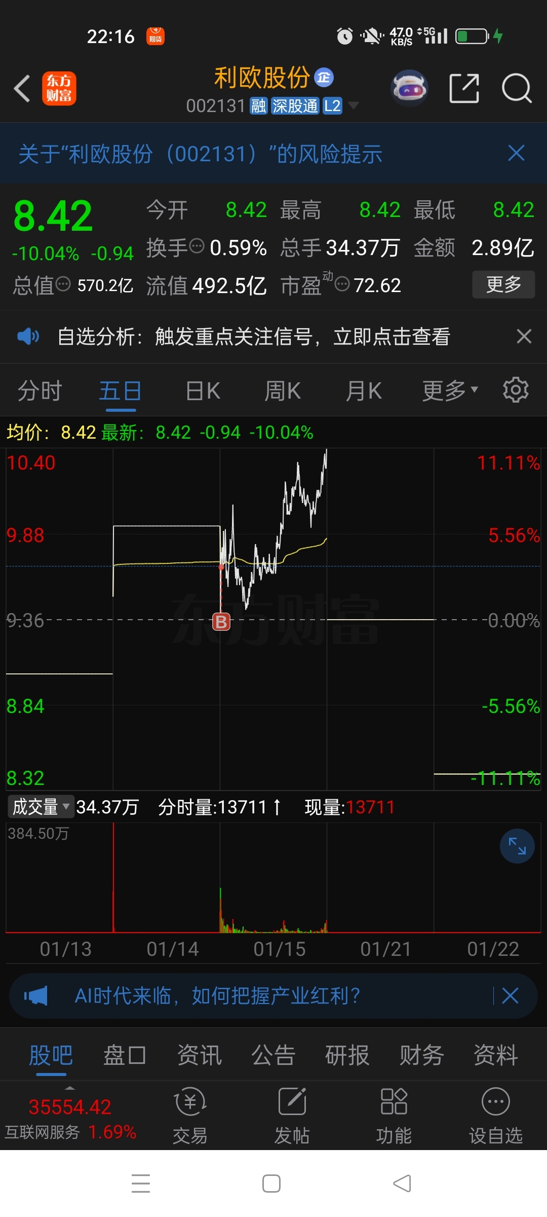 温馨提示: 1.根据《证券法》规定,禁止编造、传播虚假信息或者误导性信息,扰乱证券市场;2.用户在本社区发表的所有资料、言论等仅代表个人观点,与本网站立场无关,不对您构成任何投资建议。用户应基于自己的独立判断,自行决定证券投资并承担相应风险。《东方财富社区管理规定》