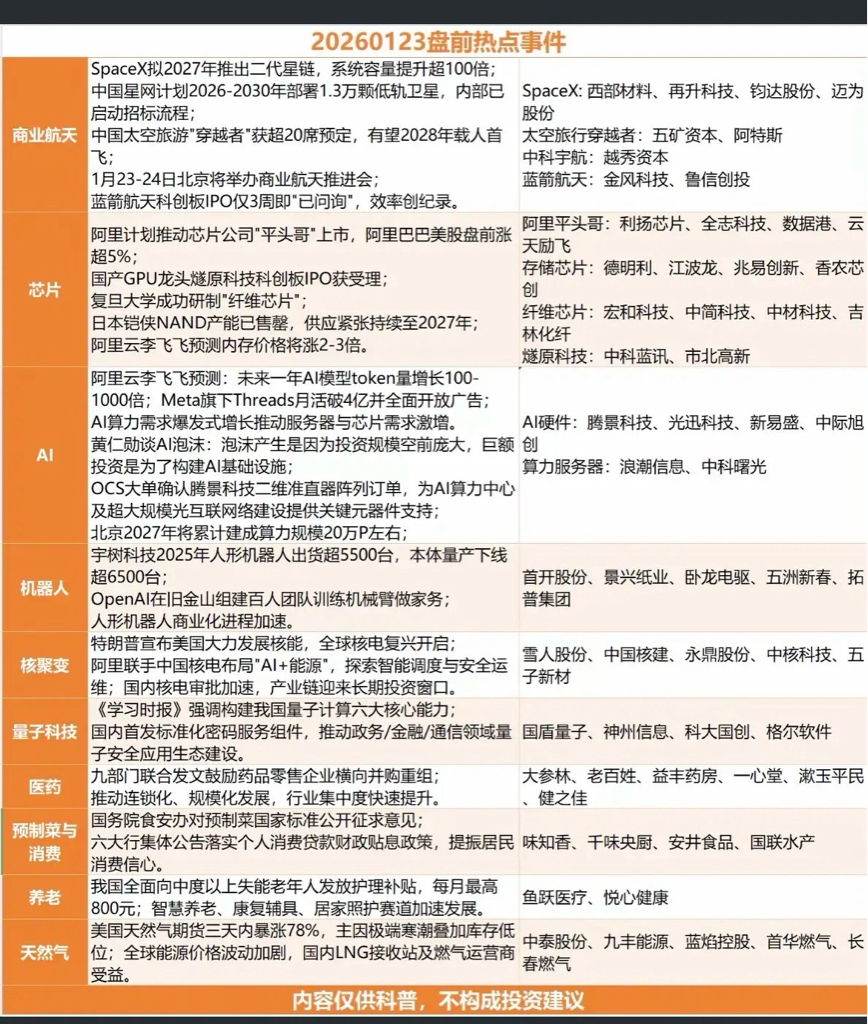 1.23周五财经热点新闻汇总!1.商业航天,太空旅游2.芯片,存储芯片3.人形机