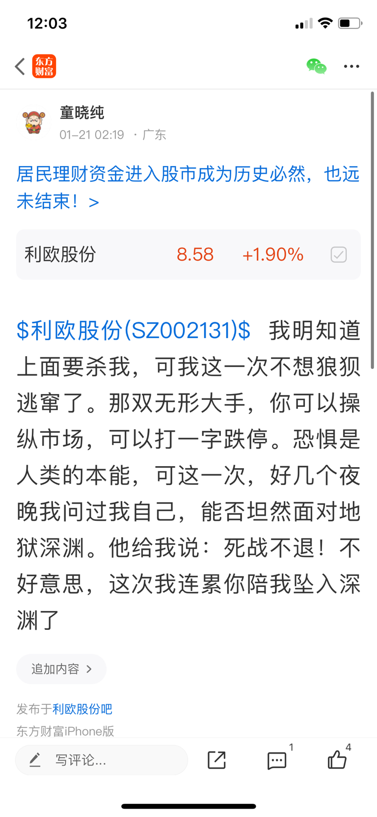 温馨提示: 1.根据《证券法》规定,禁止编造、传播虚假信息或者误导性信息,扰乱证券市场;2.用户在本社区发表的所有资料、言论等仅代表个人观点,与本网站立场无关,不对您构成任何投资建议。用户应基于自己的独立判断,自行决定证券投资并承担相应风险。《东方财富社区管理规定》