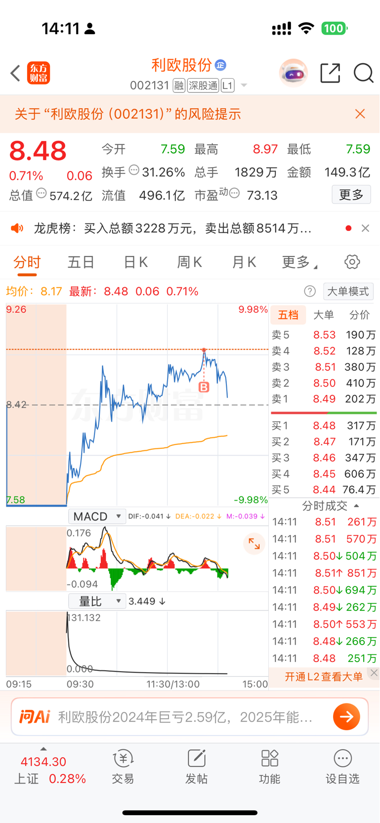 $利欧股份(SZ002131)$ 凭借一己之力把利欧砸下来了