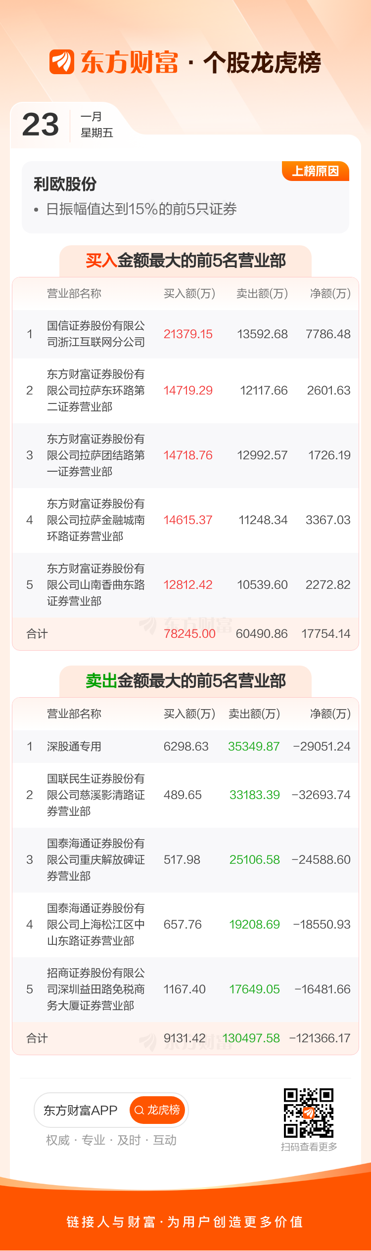 利欧股份(002131)龙虎榜数据(01-23)