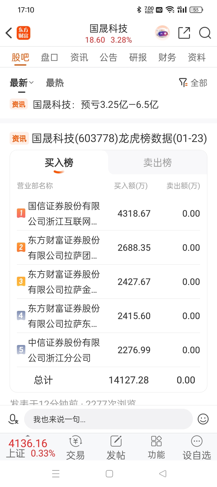 $利欧股份(SZ002131)$ 国晟科技的龙虎榜前四名和利欧的龙虎样一样的。国晟亏损,下周一可能跌停,会带着利欧起下跌,正好我今天打了底仓,下周一做T的绝佳机会。