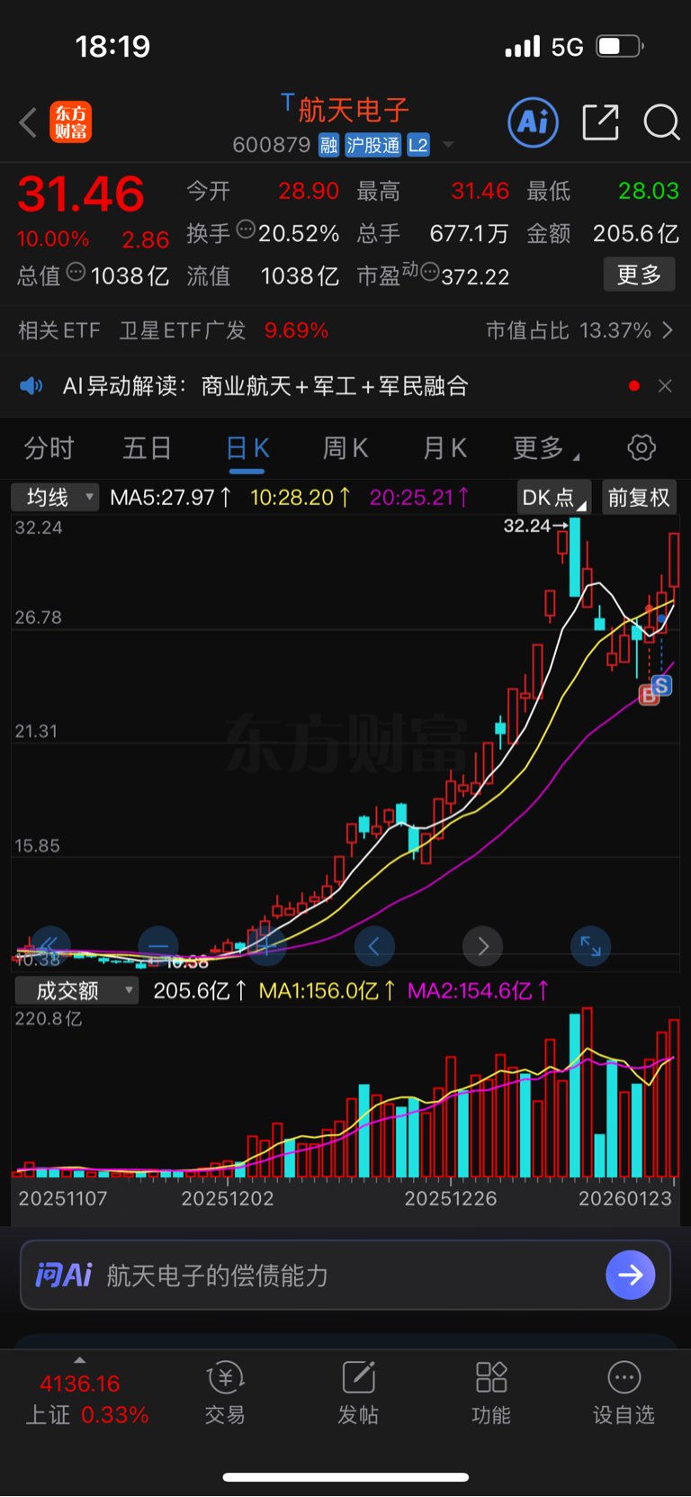 这两天节奏有点乱,周三追高了$航天电子(SH600879)$ ,在复盘的时候当时看到了 信维通信的大跌,感觉航天电子有可能补跌,周四开盘小高点出了,最终导致所有关于航天标的低吸计划全部没有执行到位…