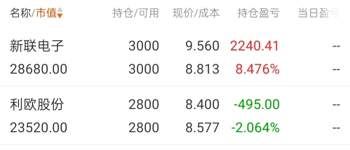 $利欧股份(SZ002131)$ 周一操作策略,若低开低走,立刻清仓新联电子,继续加仓(等量加仓做T),若平开或高开持股不动