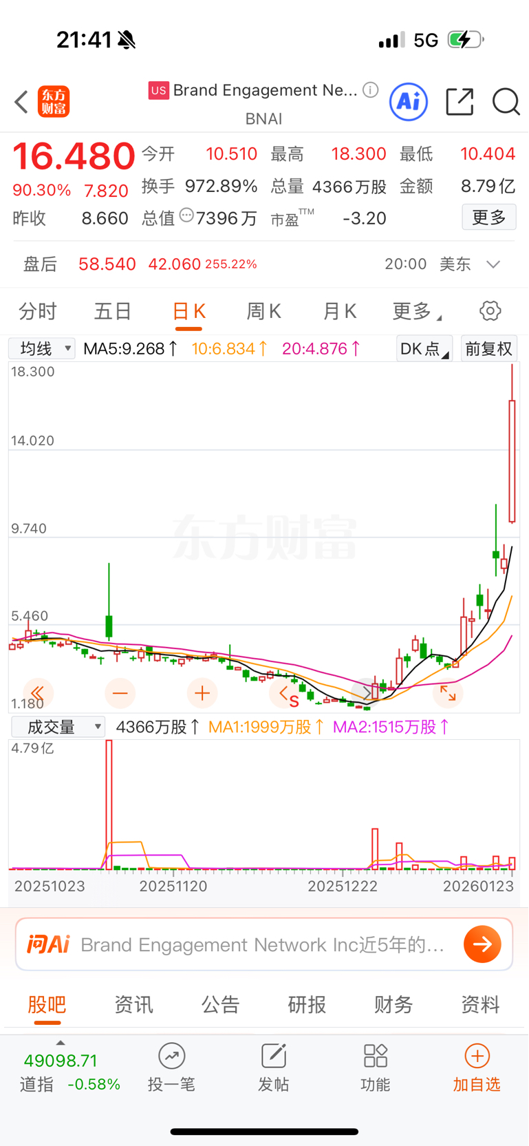美股AI应用公司股价大涨,盘后也涨了好几倍,下周有可能开一子涨停