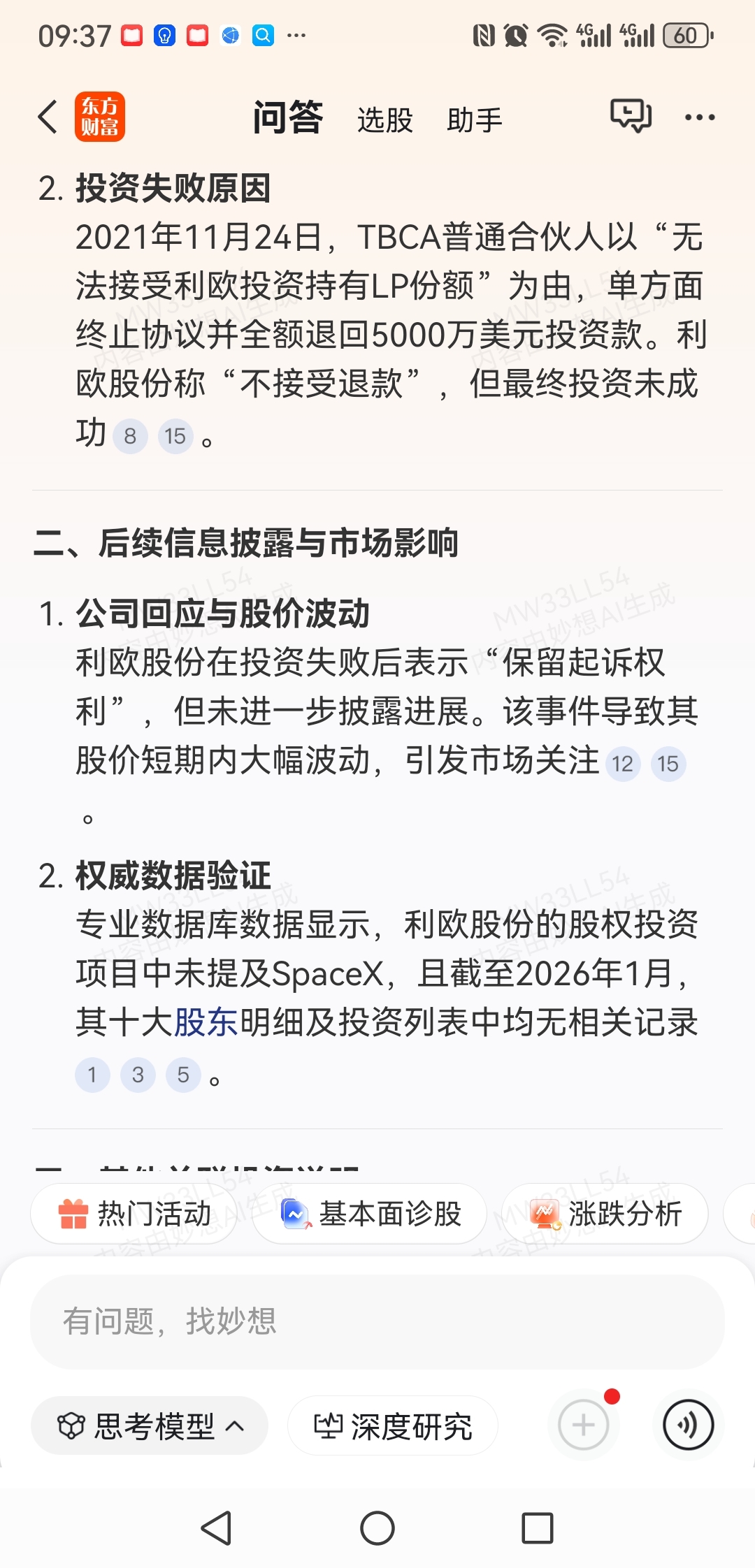 搞Al不就是为了Al应用,现在的互联网大厂盈利不都是靠广告,营销和游戏,Al应用首先在广告和营销上落地没毛病,利欧是二市Al营销龙头,况且利欧还投资了摩尔,宇树,航天科工火箭,投资马斯克的Space X 虽然有纠纷,但利欧花巨资上诉美国法院,还是有胜算的,利欧肯定是和美国顶级律研究过其中的得失的!