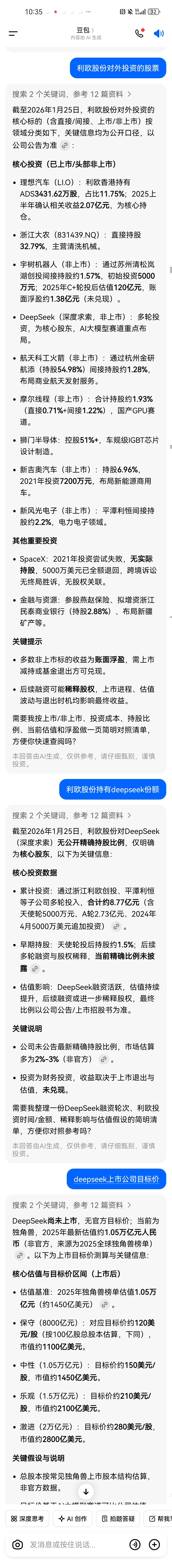 看看利欧价值多少。利欧股份持有deepseek.摩尔线程。宇树机器人,第一目标看