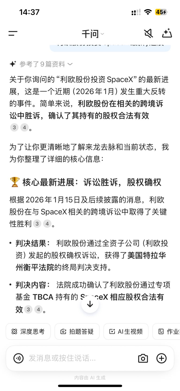 $利欧股份(SZ002131)$ 千问也确认了投资争议胜诉