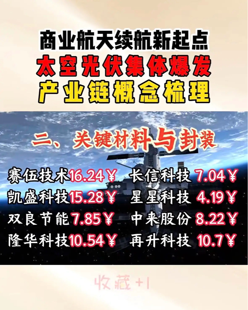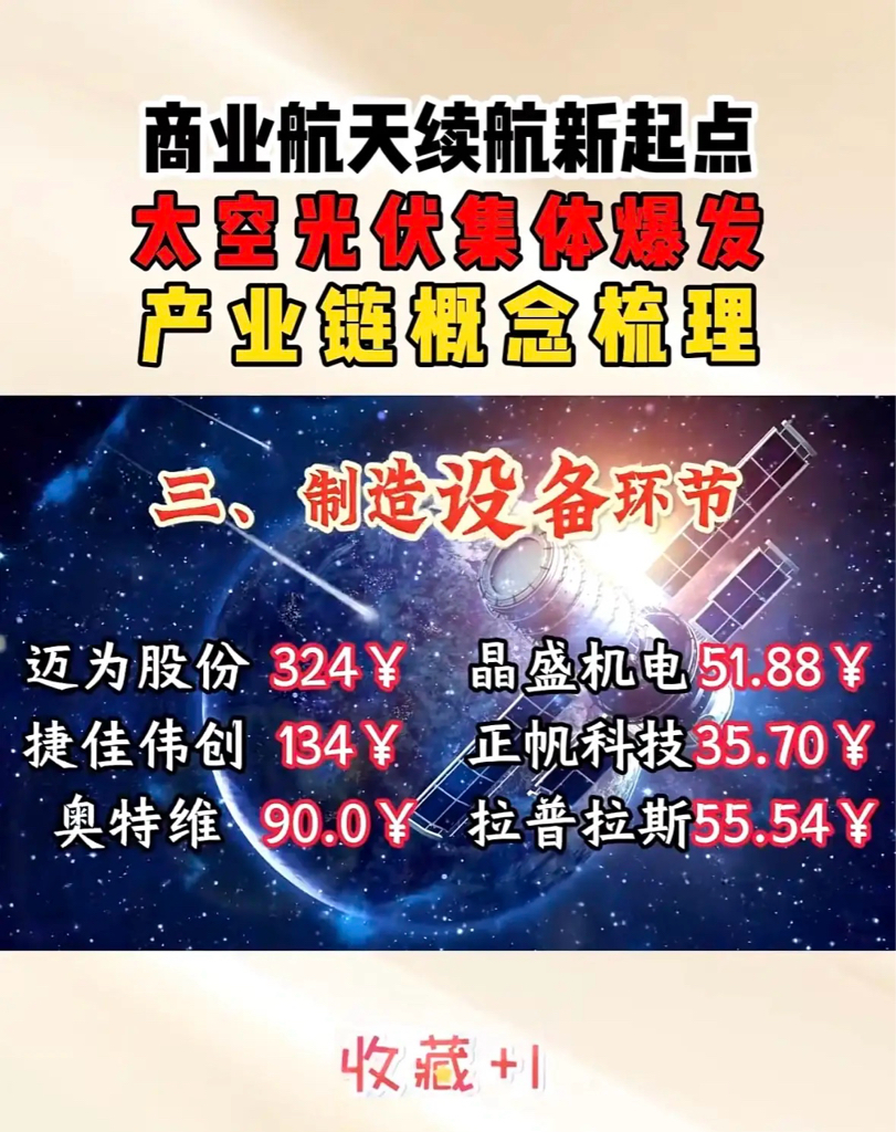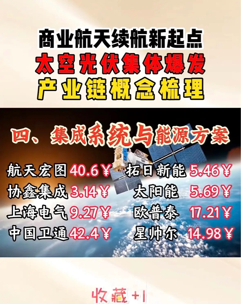 "商业航天与光伏产业共振,三安、晶科等龙头领跑,新能源电池成关键赛道,绿色科技投资热潮再起。"$利欧股份(SZ002131)$ $协鑫集成(SZ002506)$ $航天电子(SH600879)$