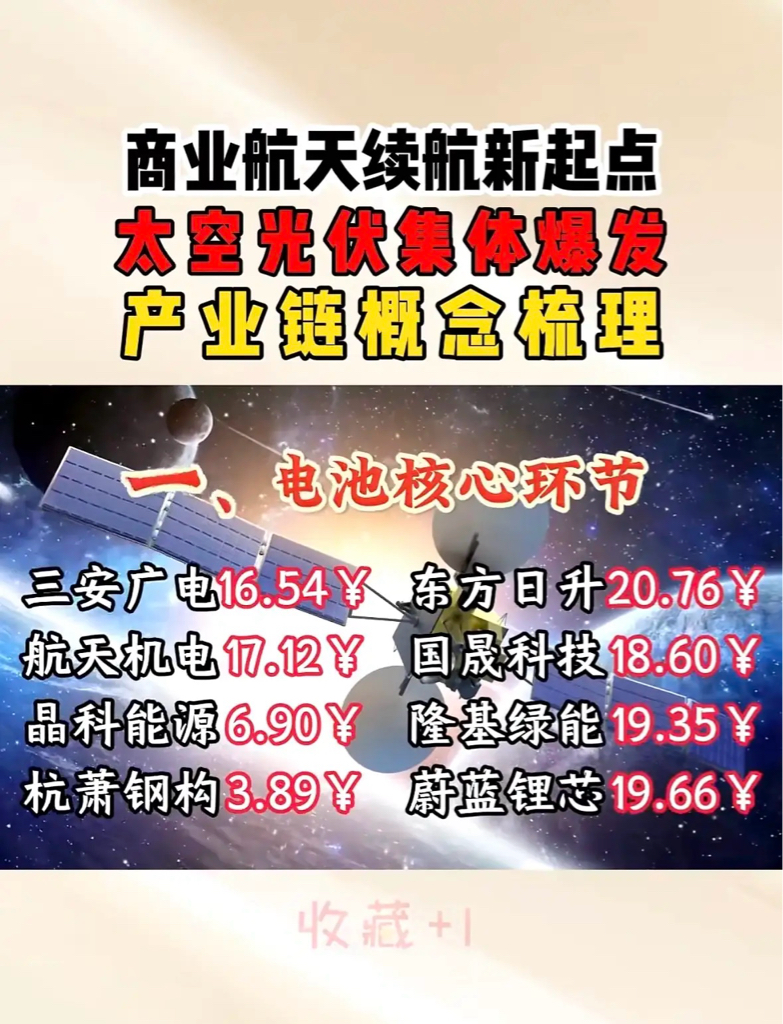 商业航天新起点,电池核心环节爆发!"商业航天与光伏产业共振,三安、晶科等龙头领跑