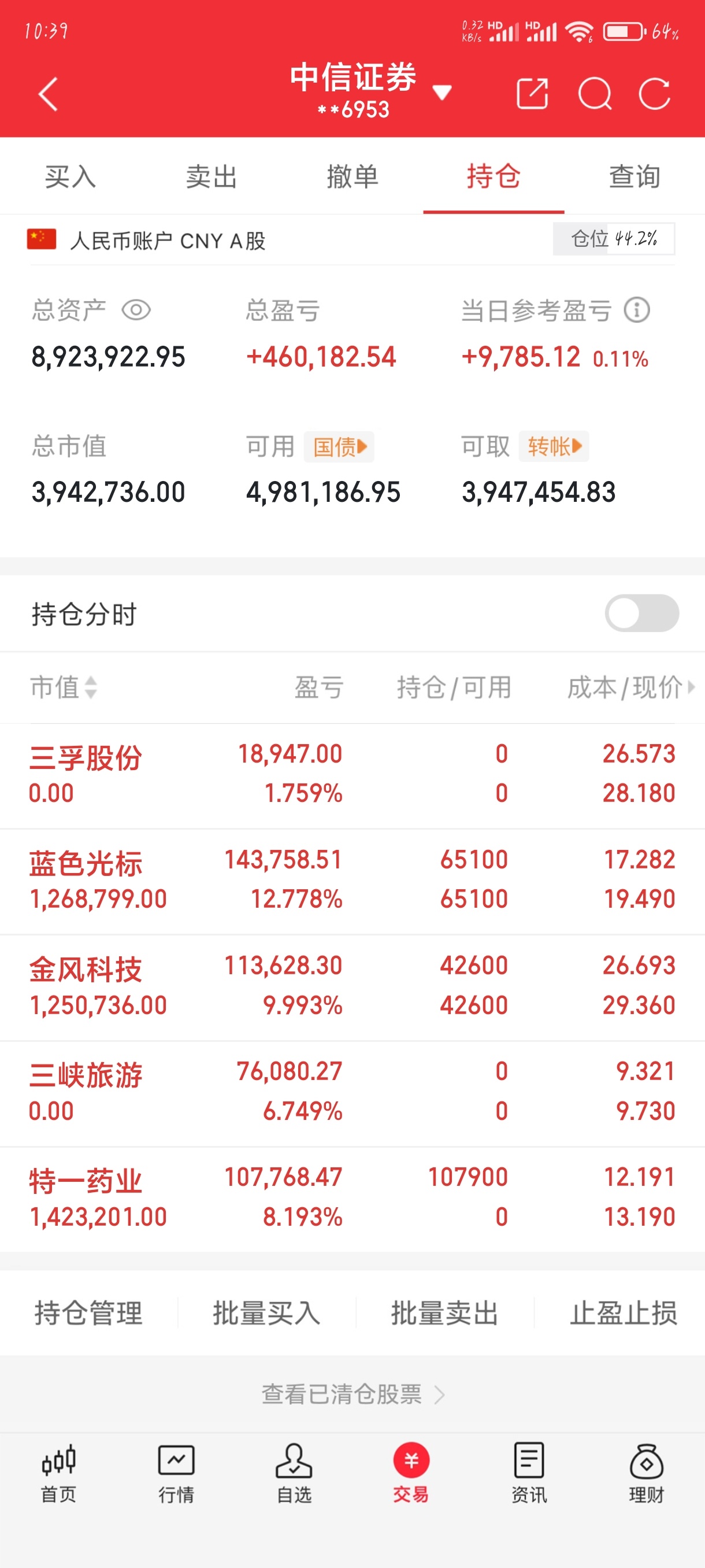 大家上午好,新的一周继续更新一下今日持仓!今天给三孚股份和三峡旅游给止盈出局了,