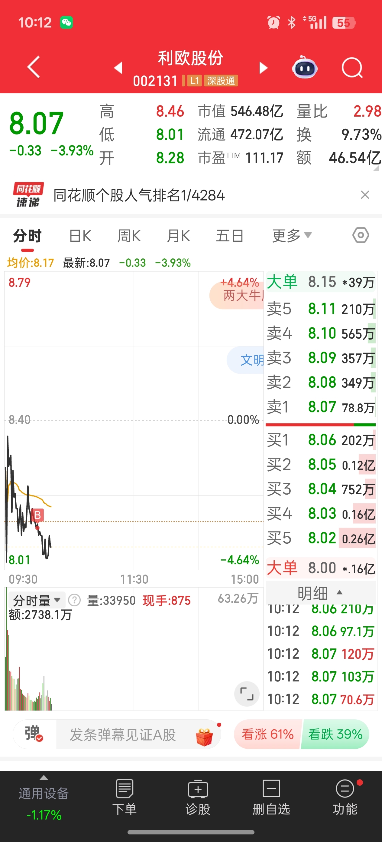 $利欧股份(SZ002131)$ 上午8.12卖出点成了全仓买入,不知是福是祸