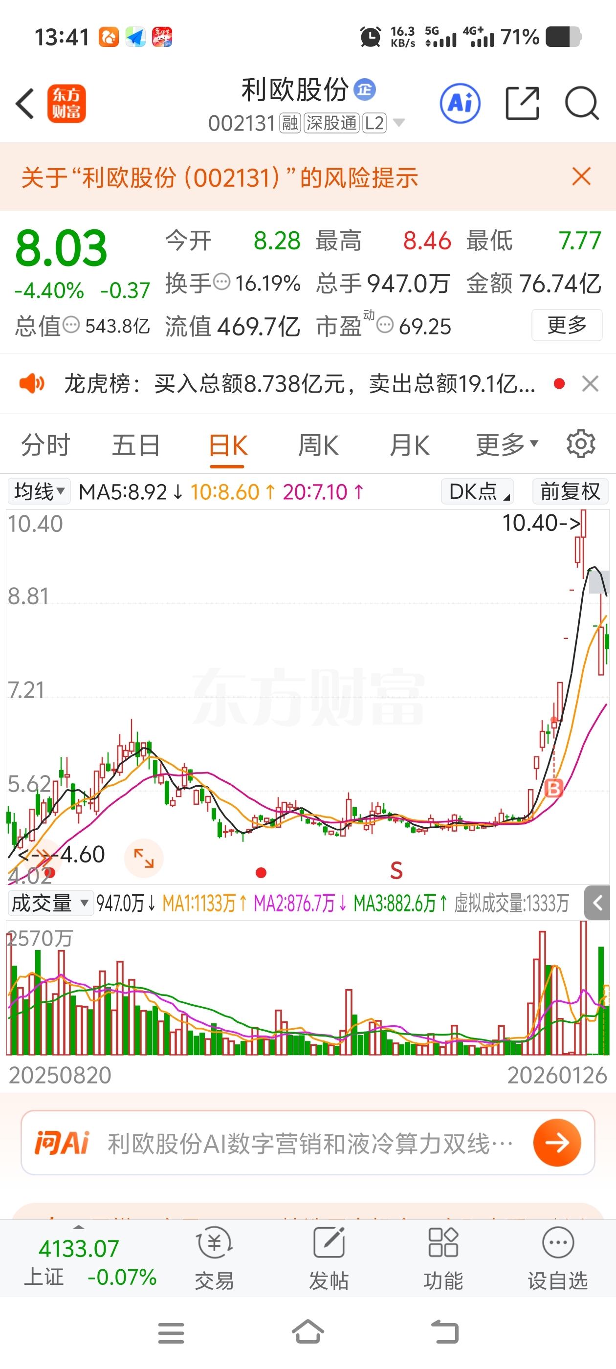 温馨提示: 1.根据《证券法》规定,禁止编造、传播虚假信息或者误导性信息,扰乱证券市场;2.用户在本社区发表的所有资料、言论等仅代表个人观点,与本网站立场无关,不对您构成任何投资建议。用户应基于自己的独立判断,自行决定证券投资并承担相应风险。《东方财富社区管理规定》