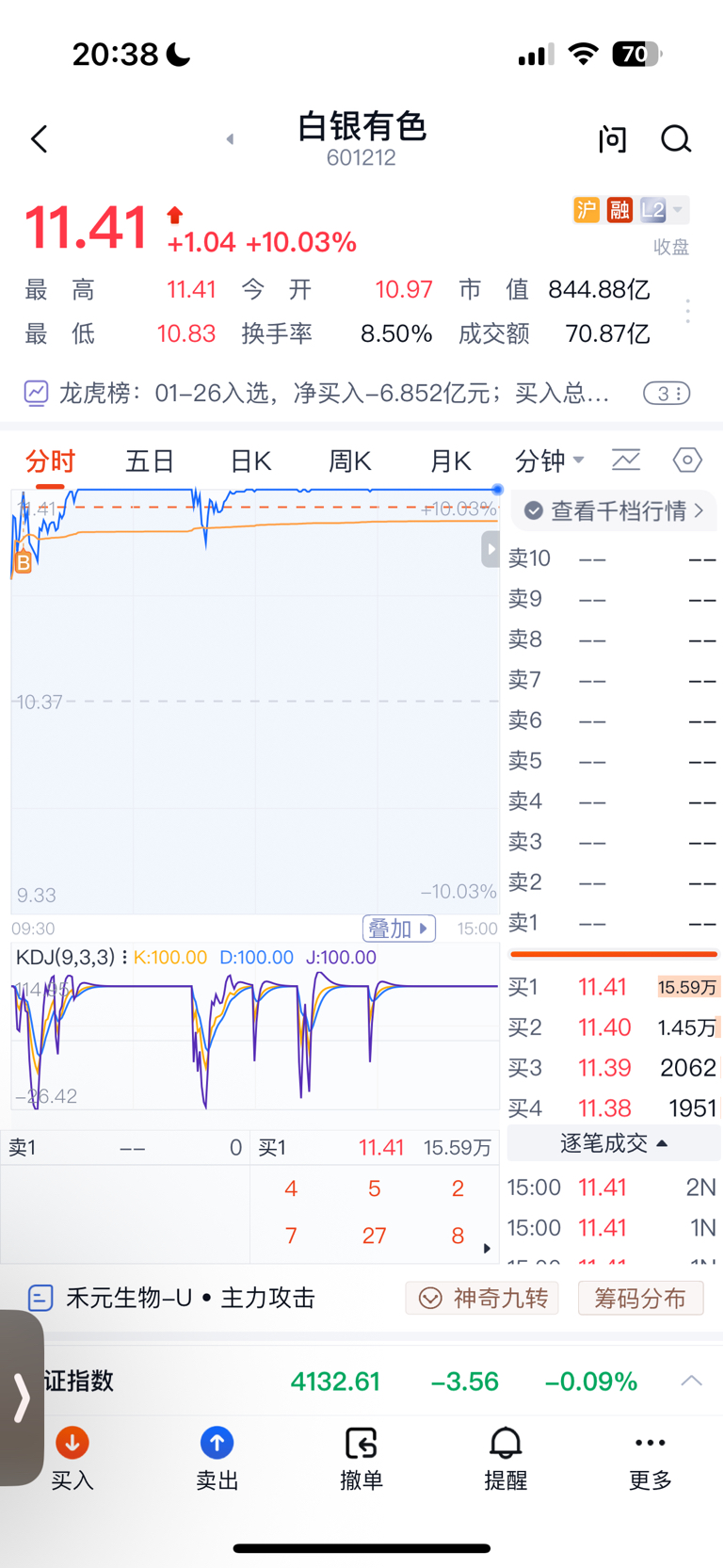 今天买了一点点白银有色,今天就这点操作,操作还算有点水平吧