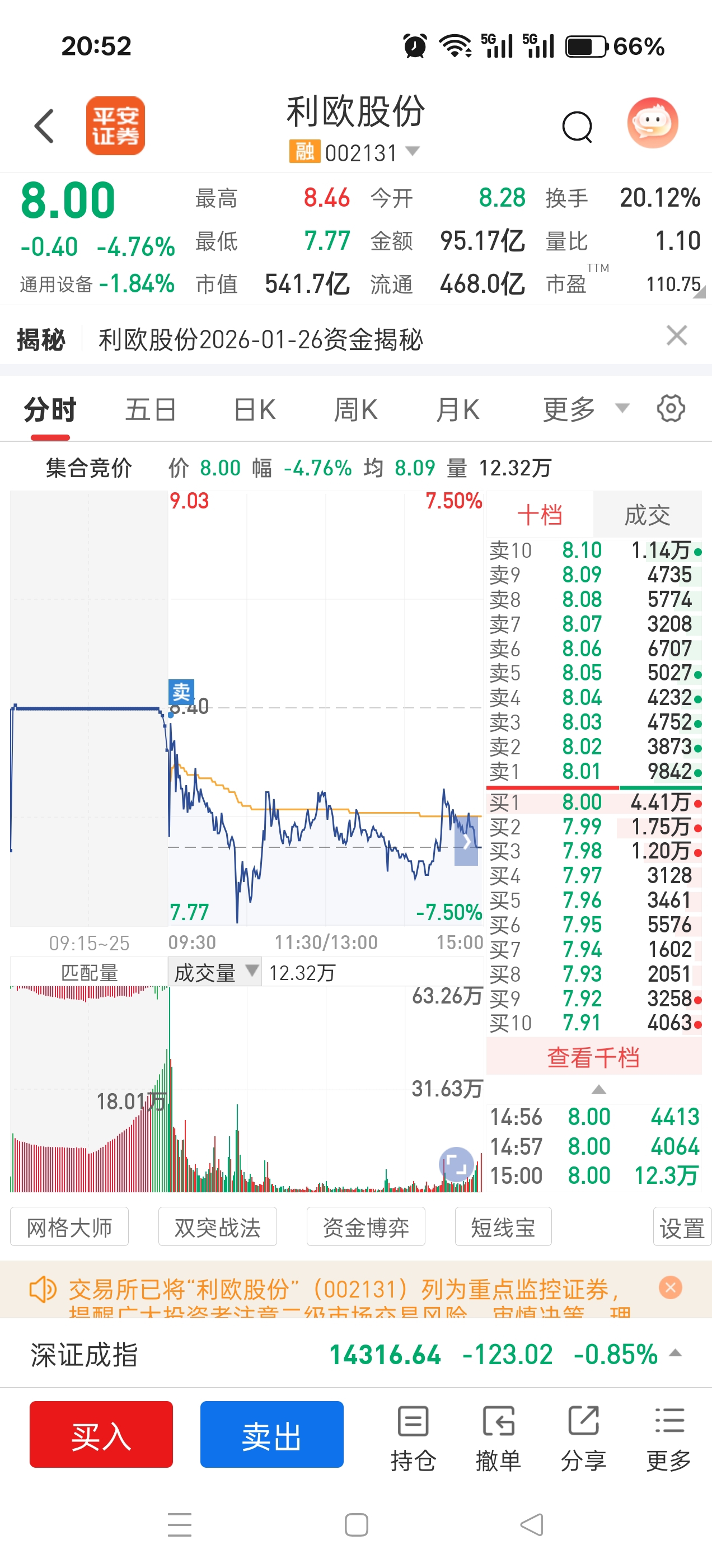 $利欧股份(SZ002131)$ 上周五,开盘看有人翘板,7.78上车,7.43几乎出在全天最高点。