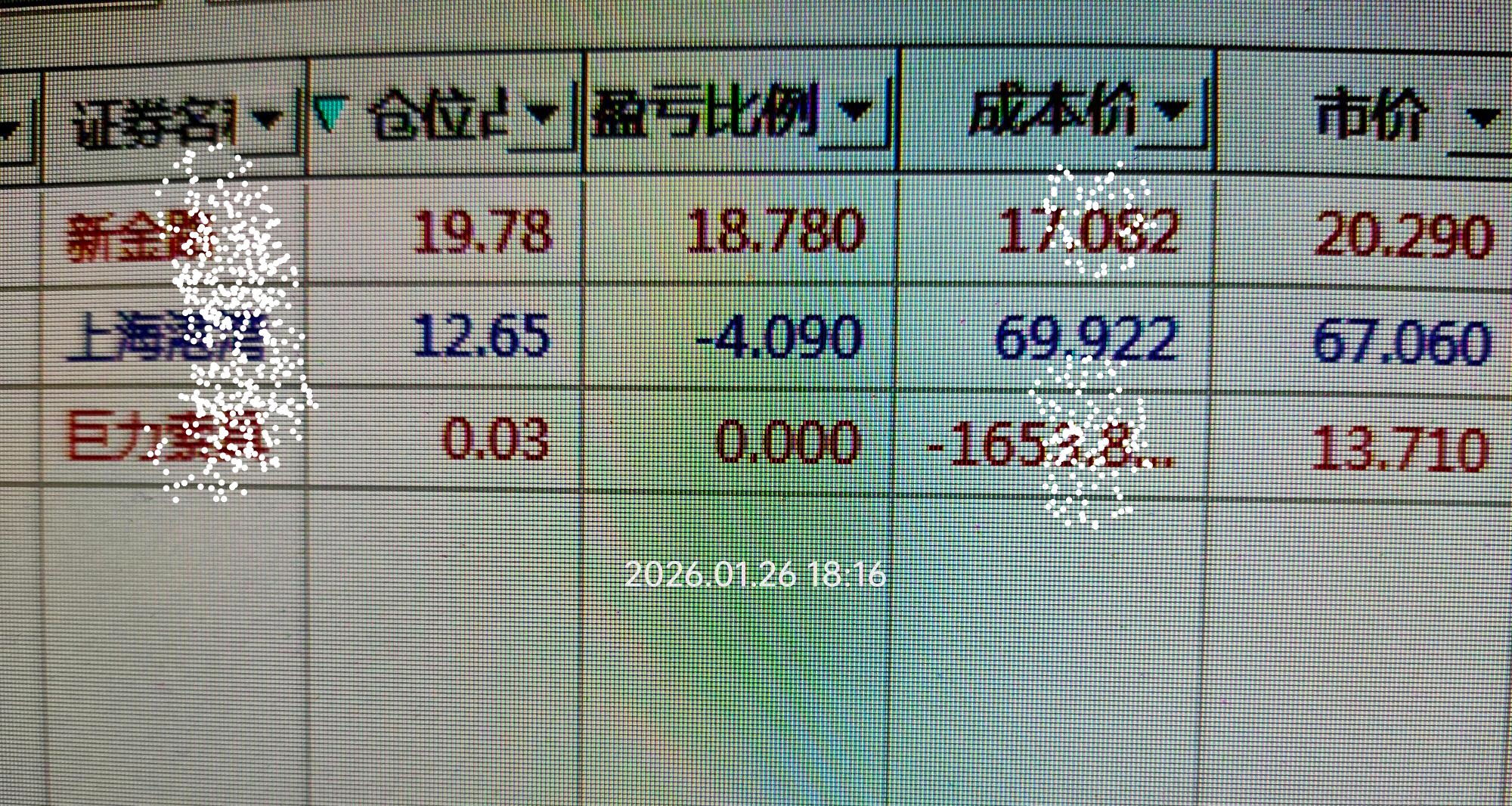 持有新金路昨天不封板3.5成减到2成浮盈18%,昨日吸上海港湾1.2成浮亏4%,