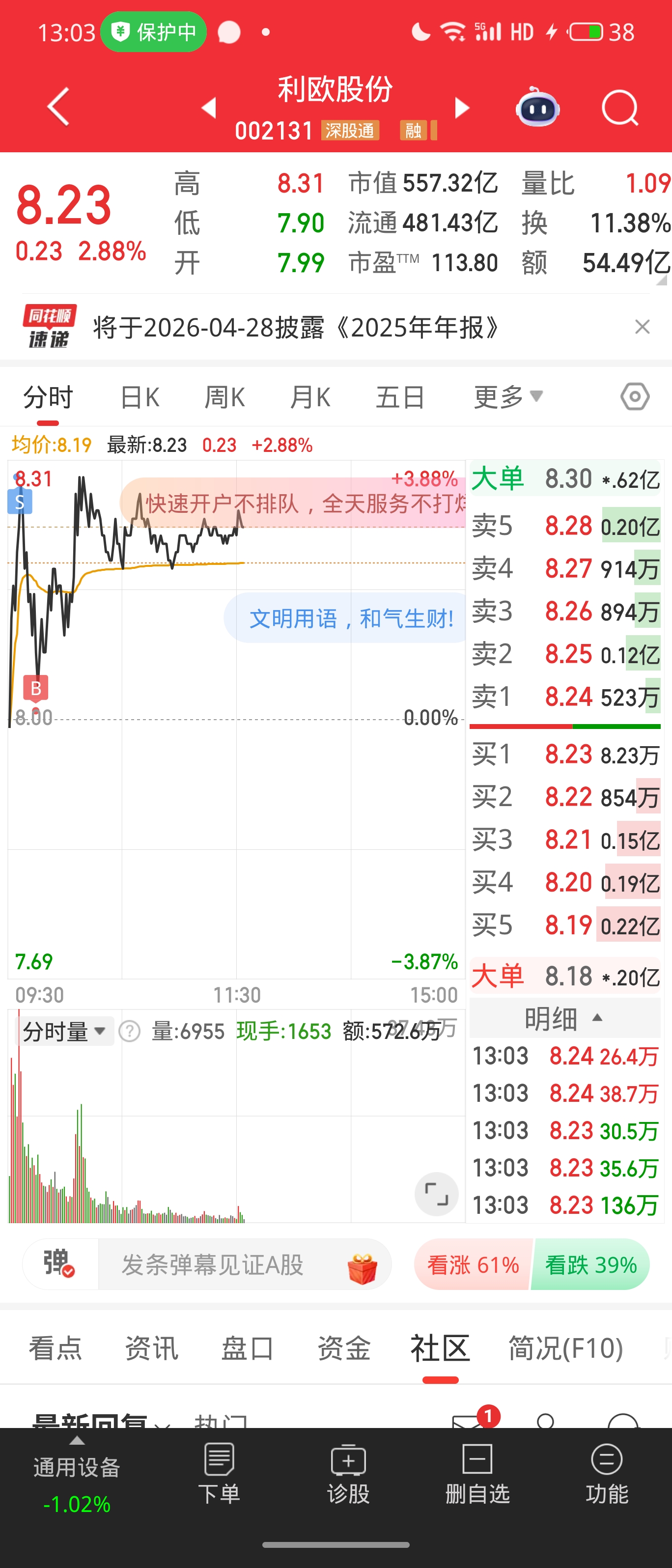 温馨提示: 1.根据《证券法》规定,禁止编造、传播虚假信息或者误导性信息,扰乱证券市场;2.用户在本社区发表的所有资料、言论等仅代表个人观点,与本网站立场无关,不对您构成任何投资建议。用户应基于自己的独立判断,自行决定证券投资并承担相应风险。《东方财富社区管理规定》