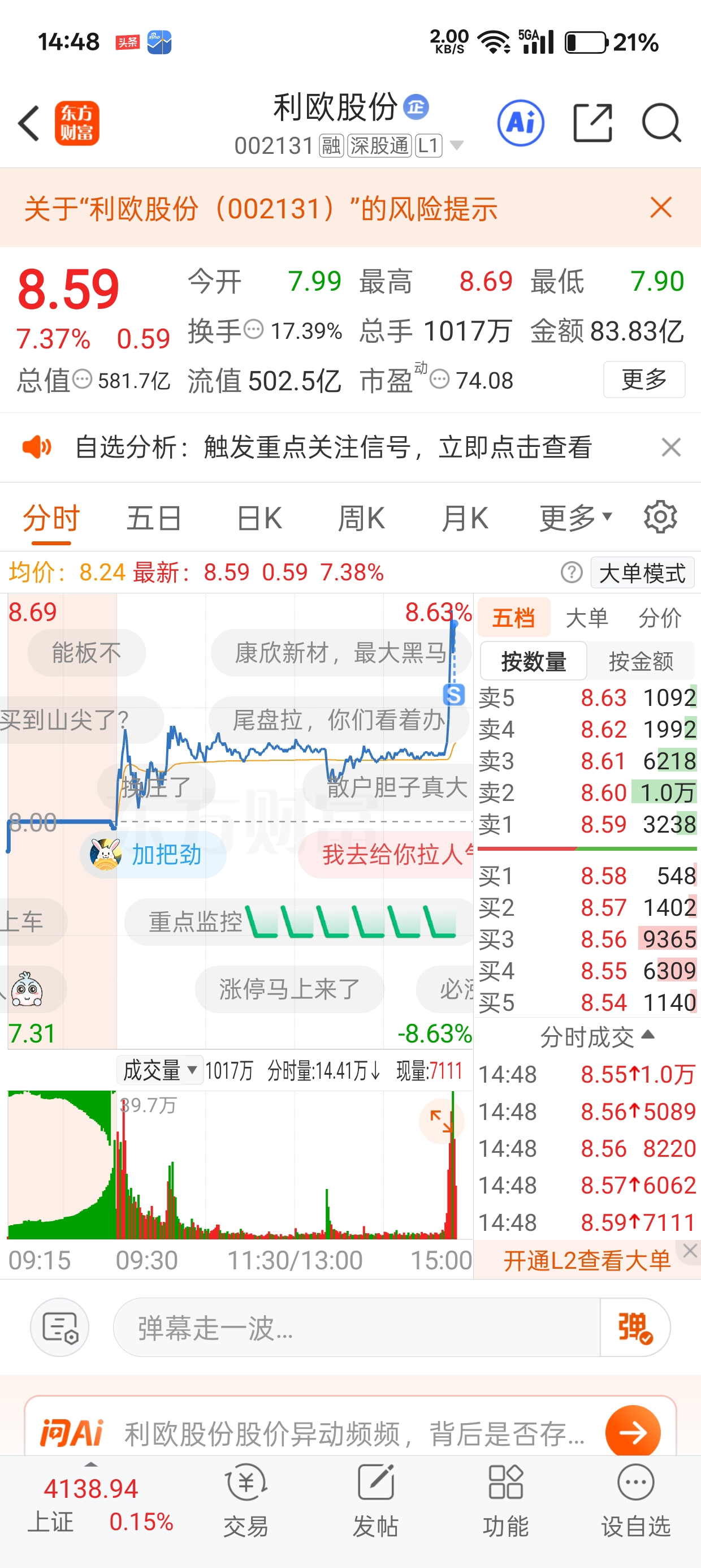 温馨提示: 1.根据《证券法》规定,禁止编造、传播虚假信息或者误导性信息,扰乱证券市场;2.用户在本社区发表的所有资料、言论等仅代表个人观点,与本网站立场无关,不对您构成任何投资建议。用户应基于自己的独立判断,自行决定证券投资并承担相应风险。《东方财富社区管理规定》