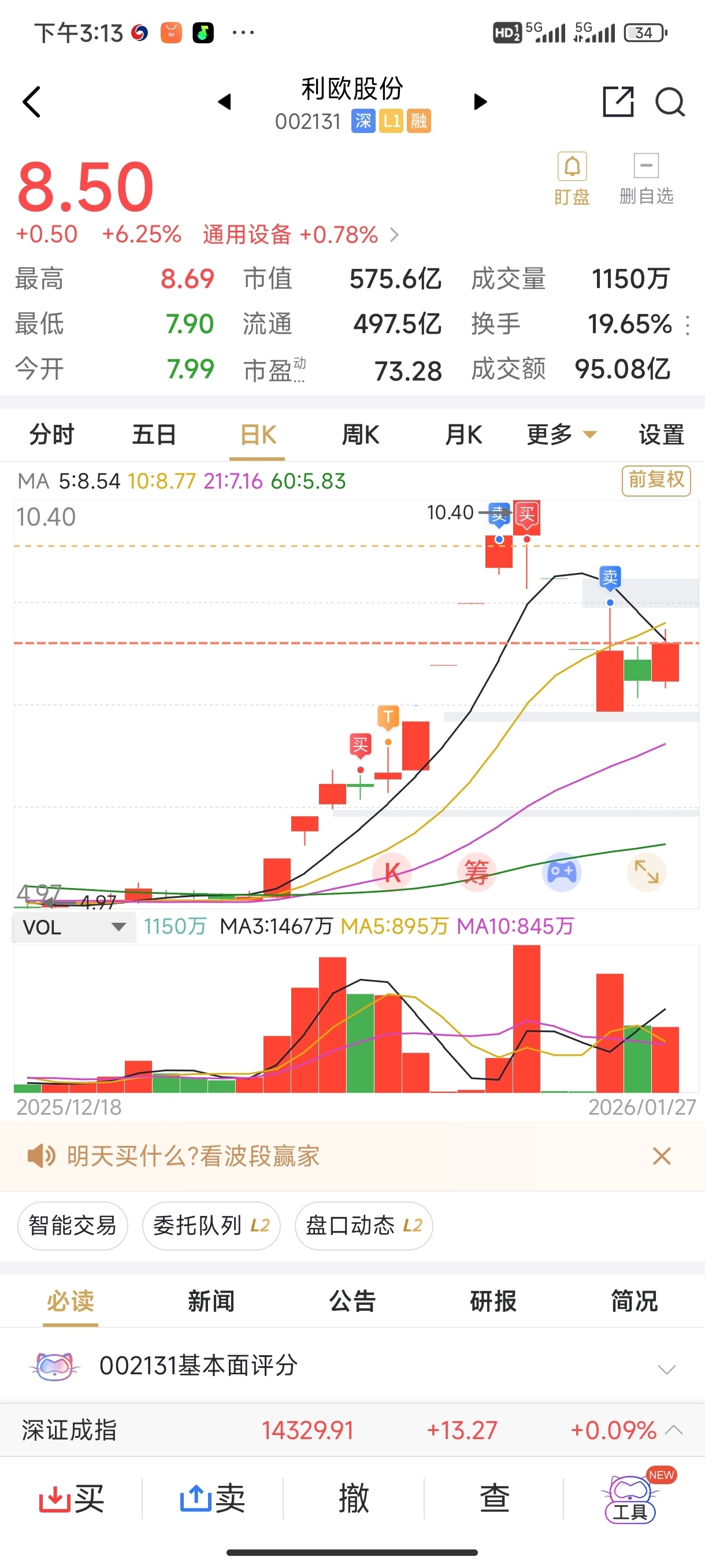 $利欧股份(SZ002131)$ 哎本来大赚的,非要贪心,今天尾盘又来陪你们了,各位韭菜我来了