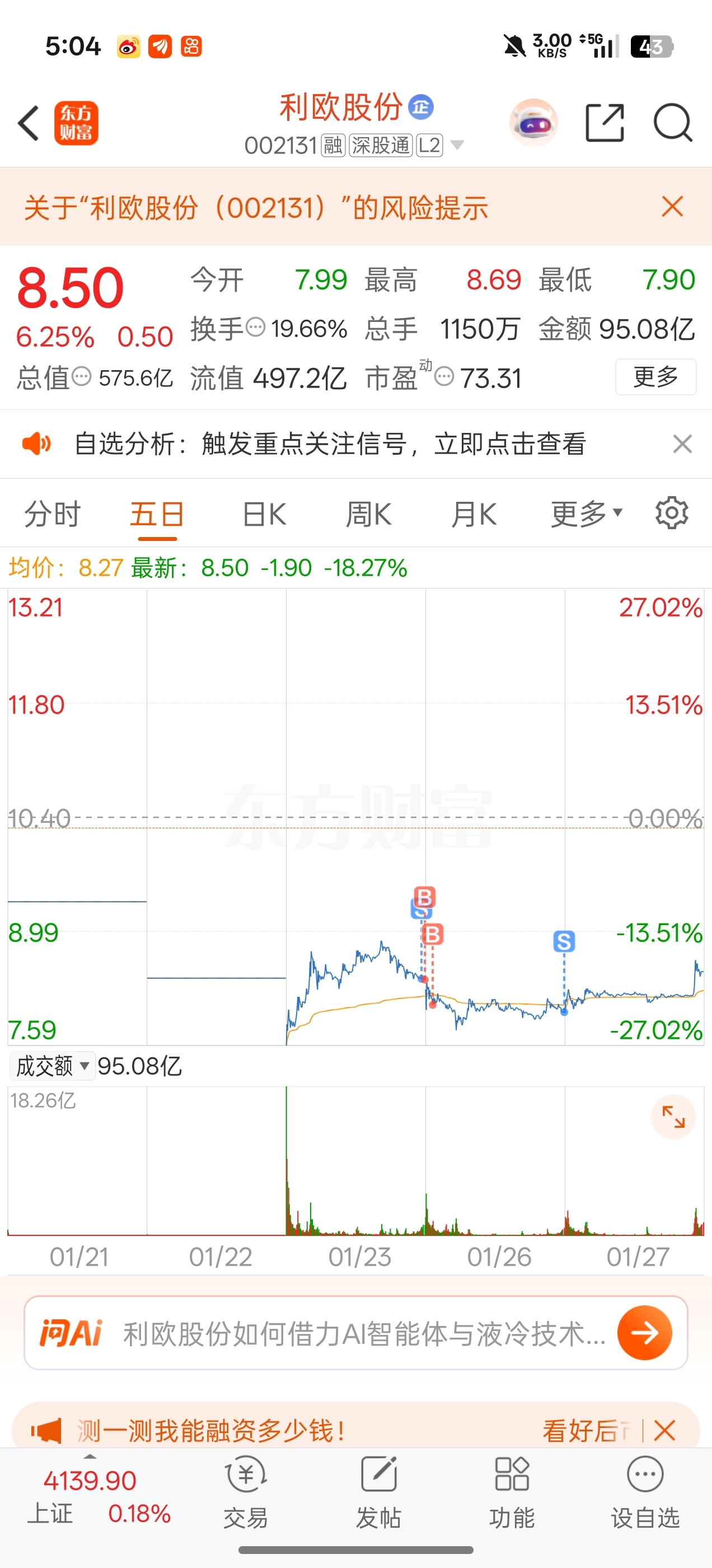 温馨提示: 1.根据《证券法》规定,禁止编造、传播虚假信息或者误导性信息,扰乱证券市场;2.用户在本社区发表的所有资料、言论等仅代表个人观点,与本网站立场无关,不对您构成任何投资建议。用户应基于自己的独立判断,自行决定证券投资并承担相应风险。《东方财富社区管理规定》