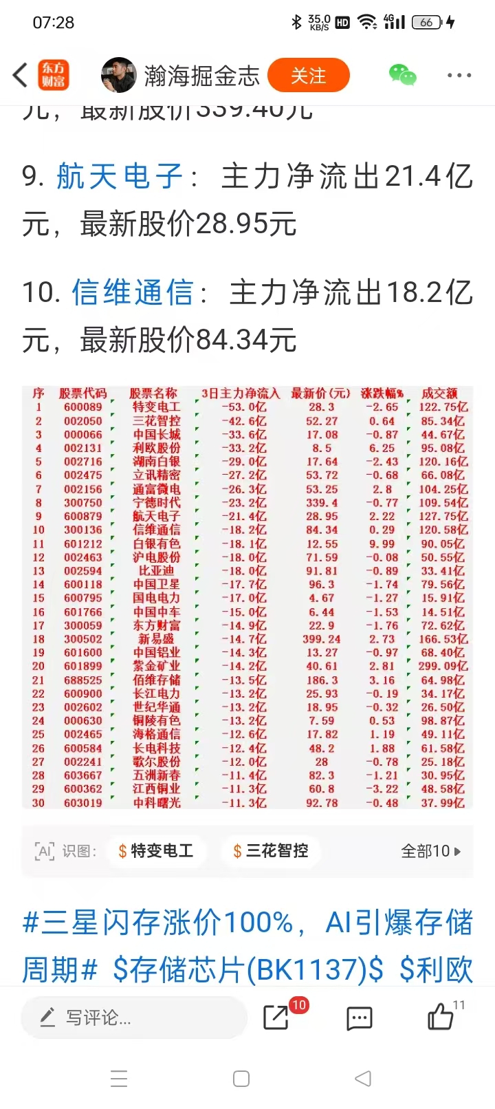 $利欧股份(SZ002131)$ 这是昨天的3日资金流出榜,与前天的3日资金流出。榜差不多,怎么会涨停?