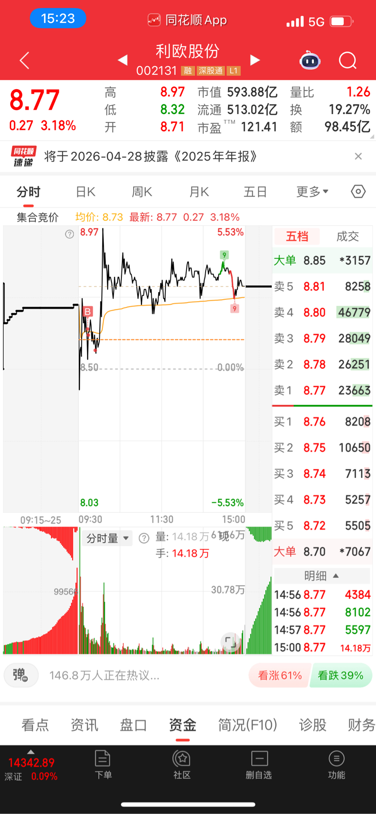 $利欧股份(SZ002131)$ 明天结束监管,今天大胆买入,明天涨停吃大肉