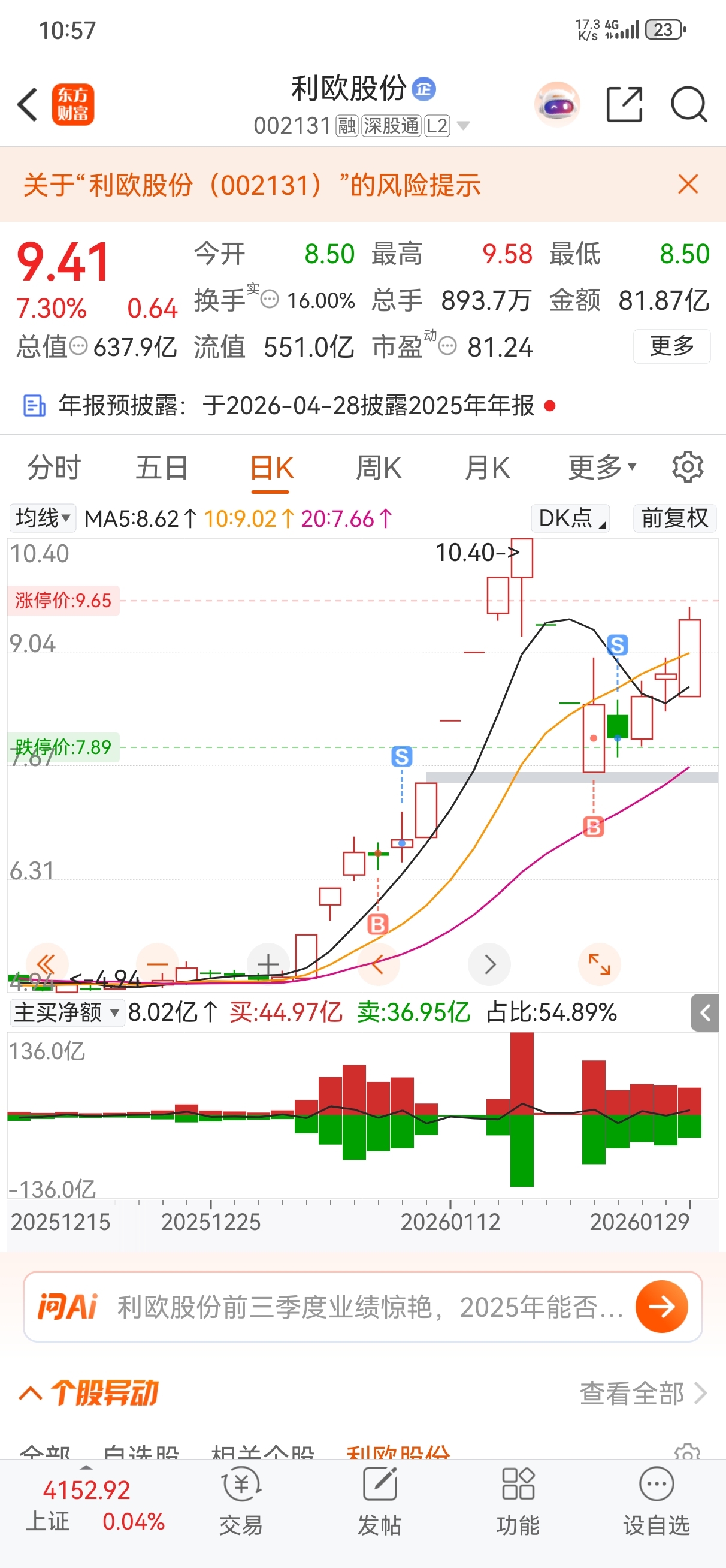 $利欧股份(SZ002131)$ 我是股神,大家跟我