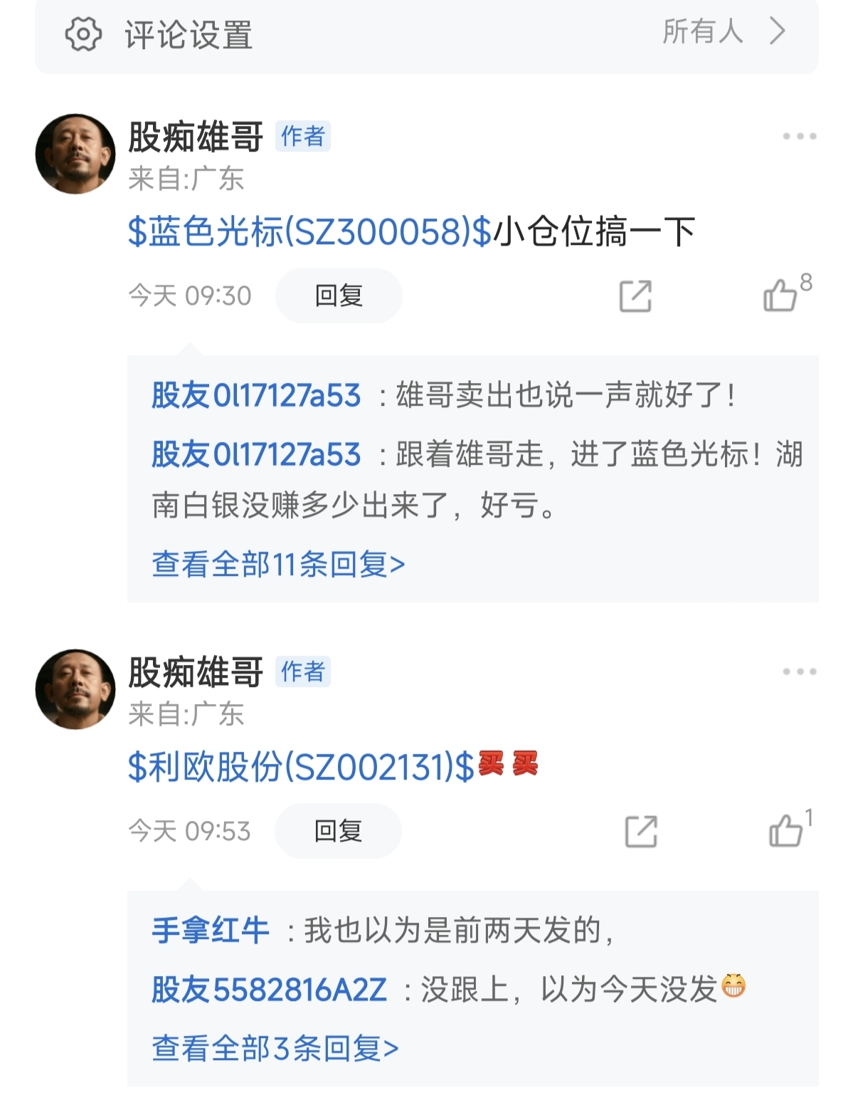 市场反馈与分析:雄哥在9点半准时提示“小仓位”介入,这通常意味着他认为该股有短期