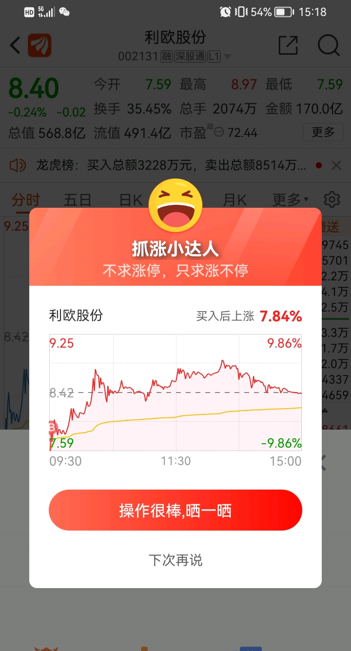 利欧今天不错嘛,超预期了,今天卖早了点,最高点9.58又舍不得清仓,真纠结,之前