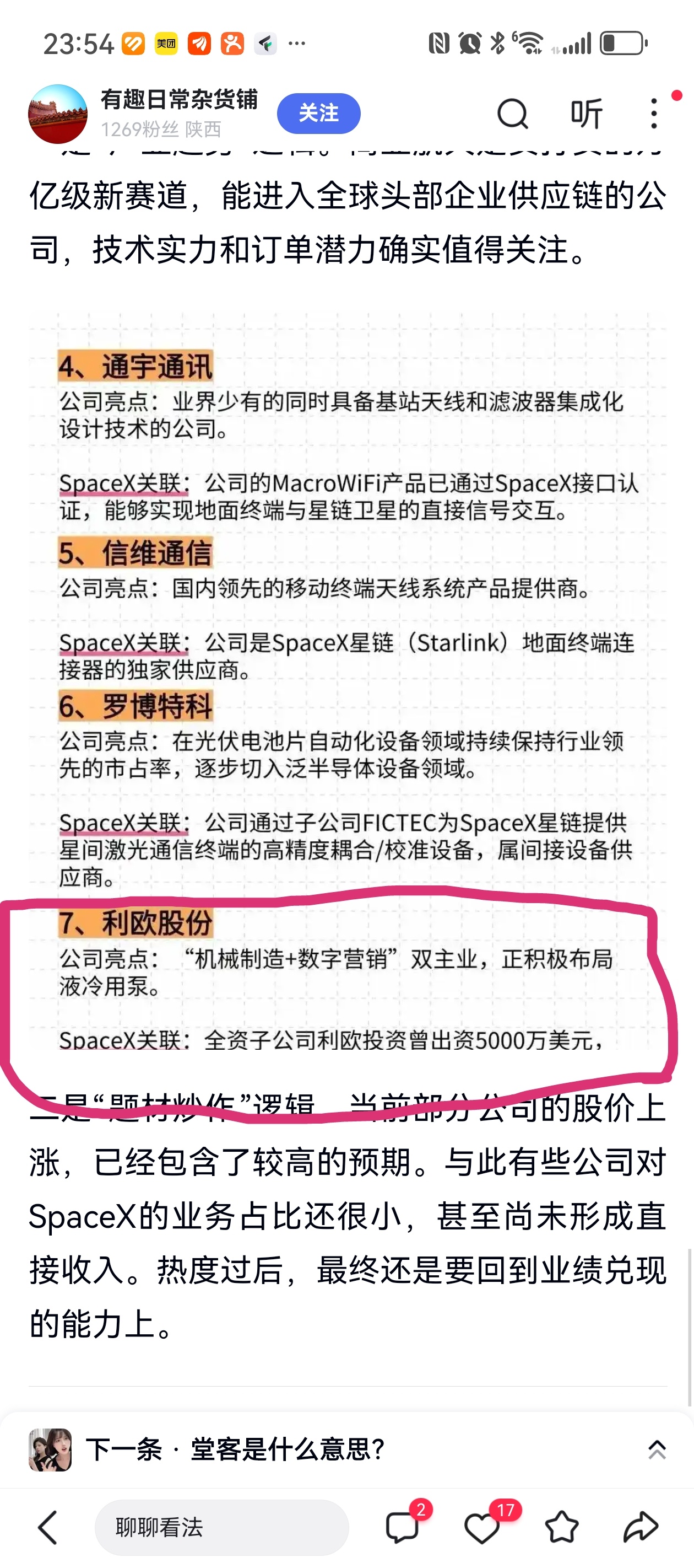 细品,再细品。马斯克的Spacex今年六月上市的话,我坚信那么利欧股份的股价是难