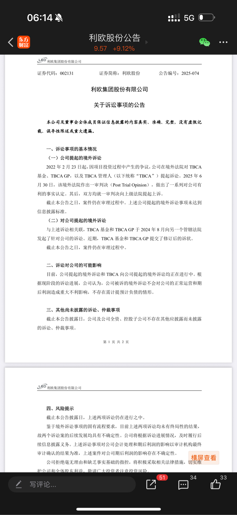 $利欧股份(SZ002131)$ 随时可能胜诉公告,一公告买不进,今天晚上还有预增公告,因为扭亏为盈大增利润。