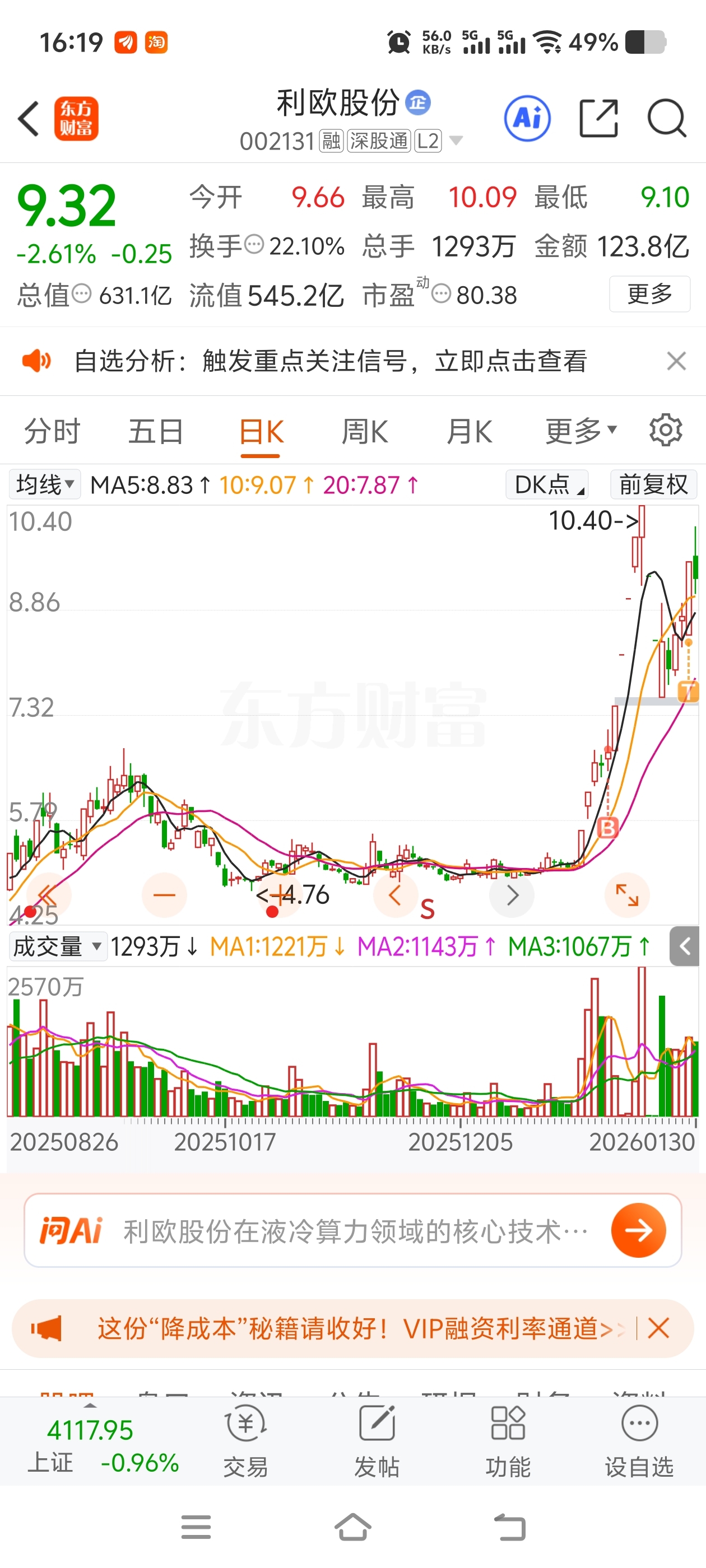 $利欧股份(SZ002131)$ 我是计划尾盘0轴附近获利卖出的,尾盘砸盘给我看兴奋了,最后一股也没卖