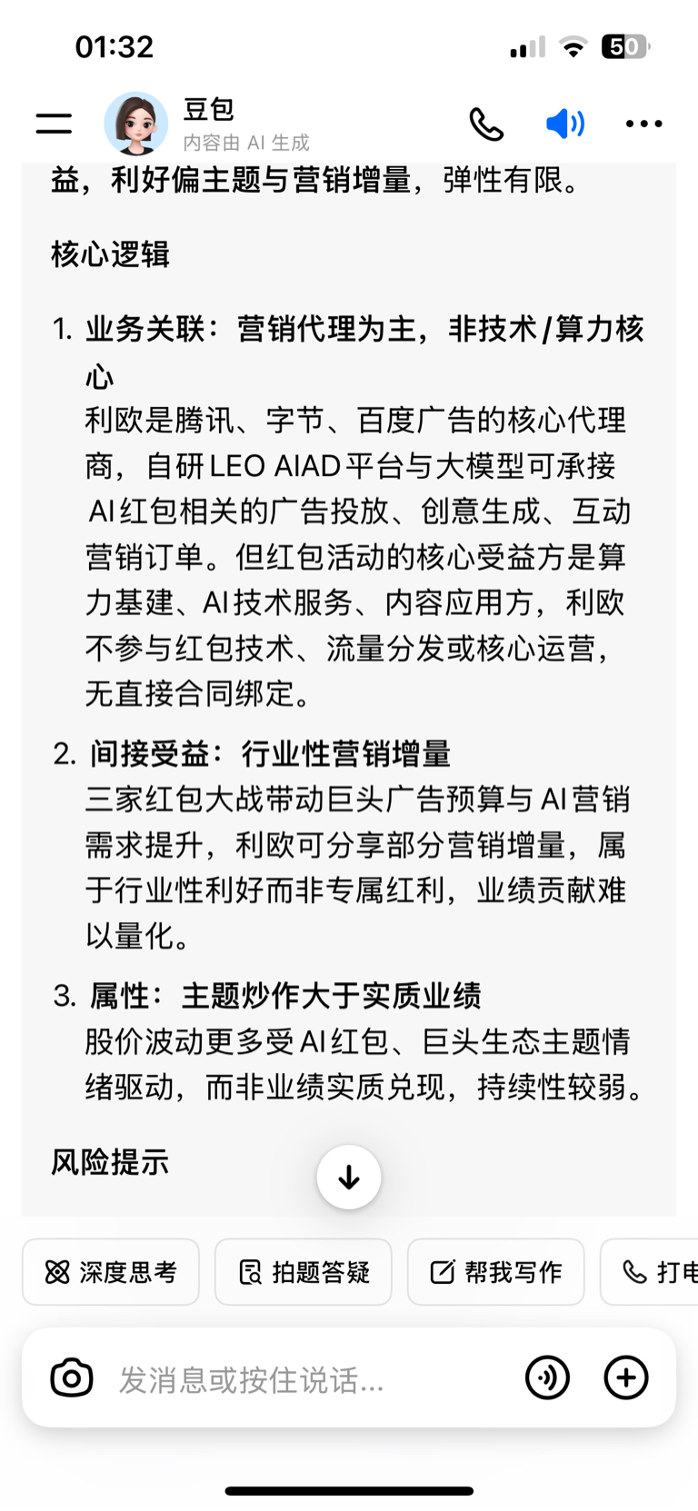 $利欧股份(SZ002131)$ 利好来了,盆友们,腾迅上2月1日0点开始的抢红包预约前24小时已超800万人,服务器卡顿。腾讯元宝,字体豆包,百度文心三家抢红包大战,一共三轮抽奖抢红包,持续到 2.17 号彻底燃爆催化 A l 主线。整体参与量级别为千万级,对易点天下利欧股份蓝色光标形成了重大利好。利好来了腾迅上2月1日0点开始的抢红包已超千万人对蓝色光标易点天下利欧股份大利好!