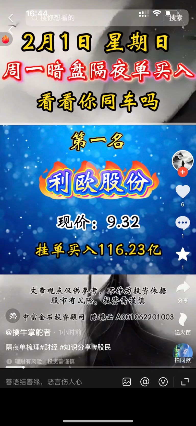 温馨提示: 1.根据《证券法》规定,禁止编造、传播虚假信息或者误导性信息,扰乱证券市场;2.用户在本社区发表的所有资料、言论等仅代表个人观点,与本网站立场无关,不对您构成任何投资建议。用户应基于自己的独立判断,自行决定证券投资并承担相应风险。《东方财富社区管理规定》