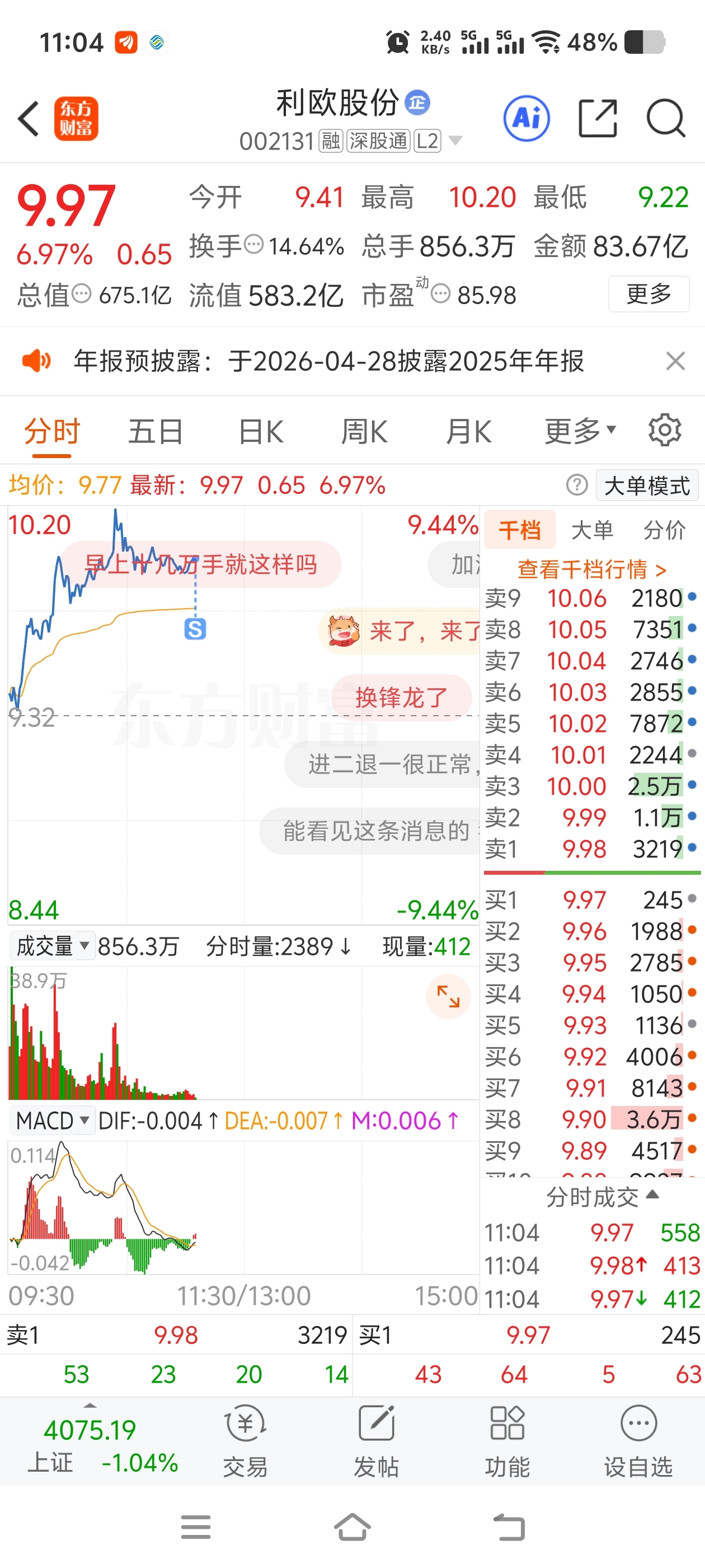 $利欧股份(SZ002131)$ 从今天开始,无论涨跌,每天卖5分之1,周五完成清仓