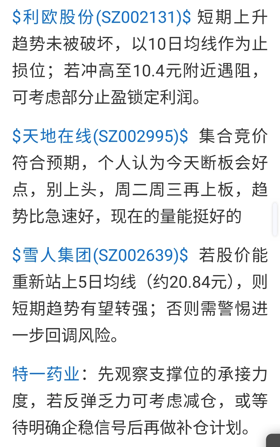 $利欧股份(SZ002131)$ $天地在线(SZ002995)$ $雪人集团(SZ002639)$