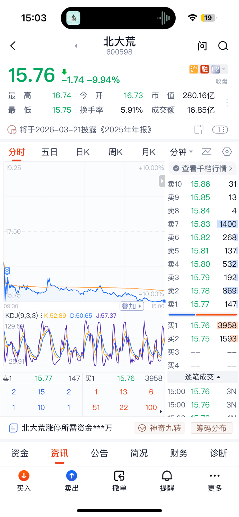 我今天的操作有水平没早盘看北大荒反弹无力,直接割掉了,本来是开盘直接割的,还是太