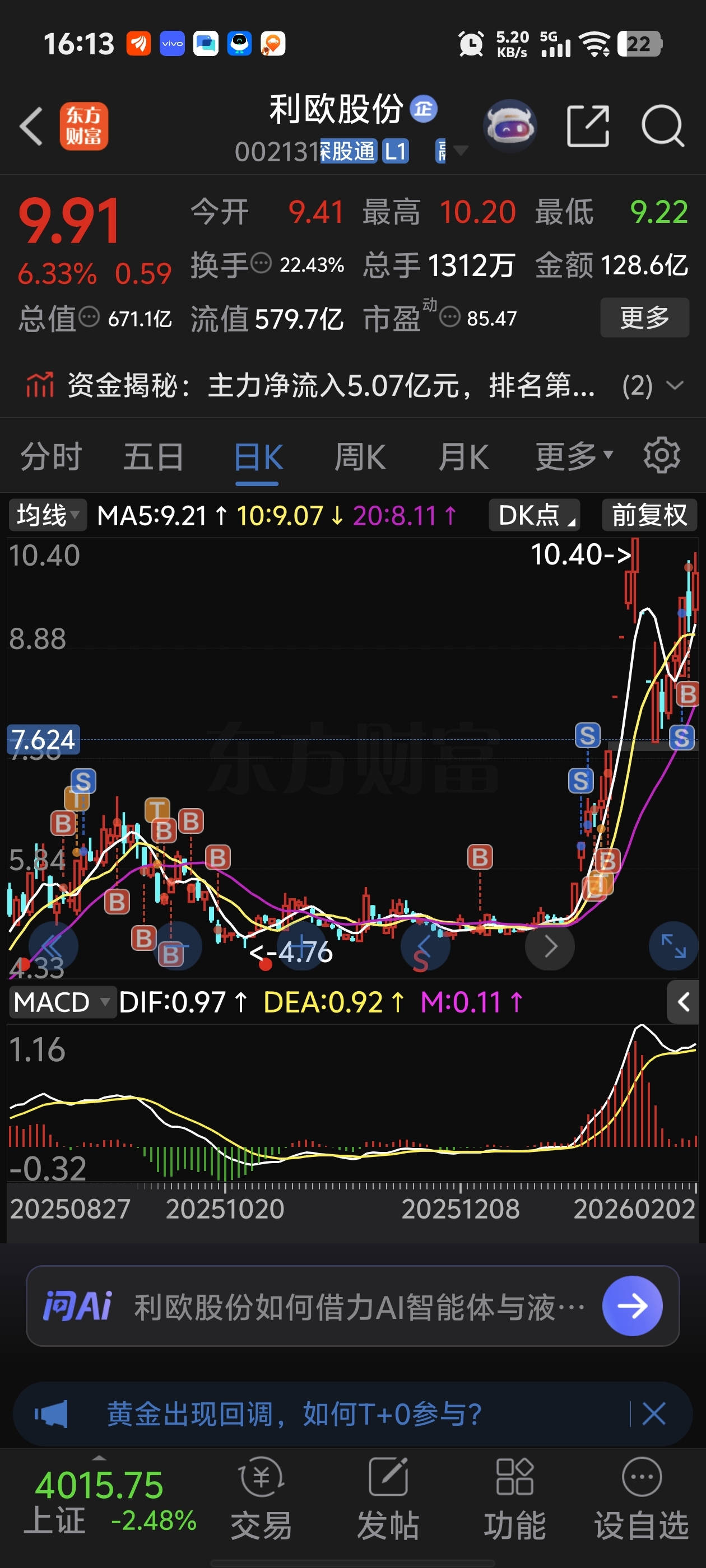 $利欧股份(SZ002131)$ 有没有大哥指点一下 明天是继续拿还是出!