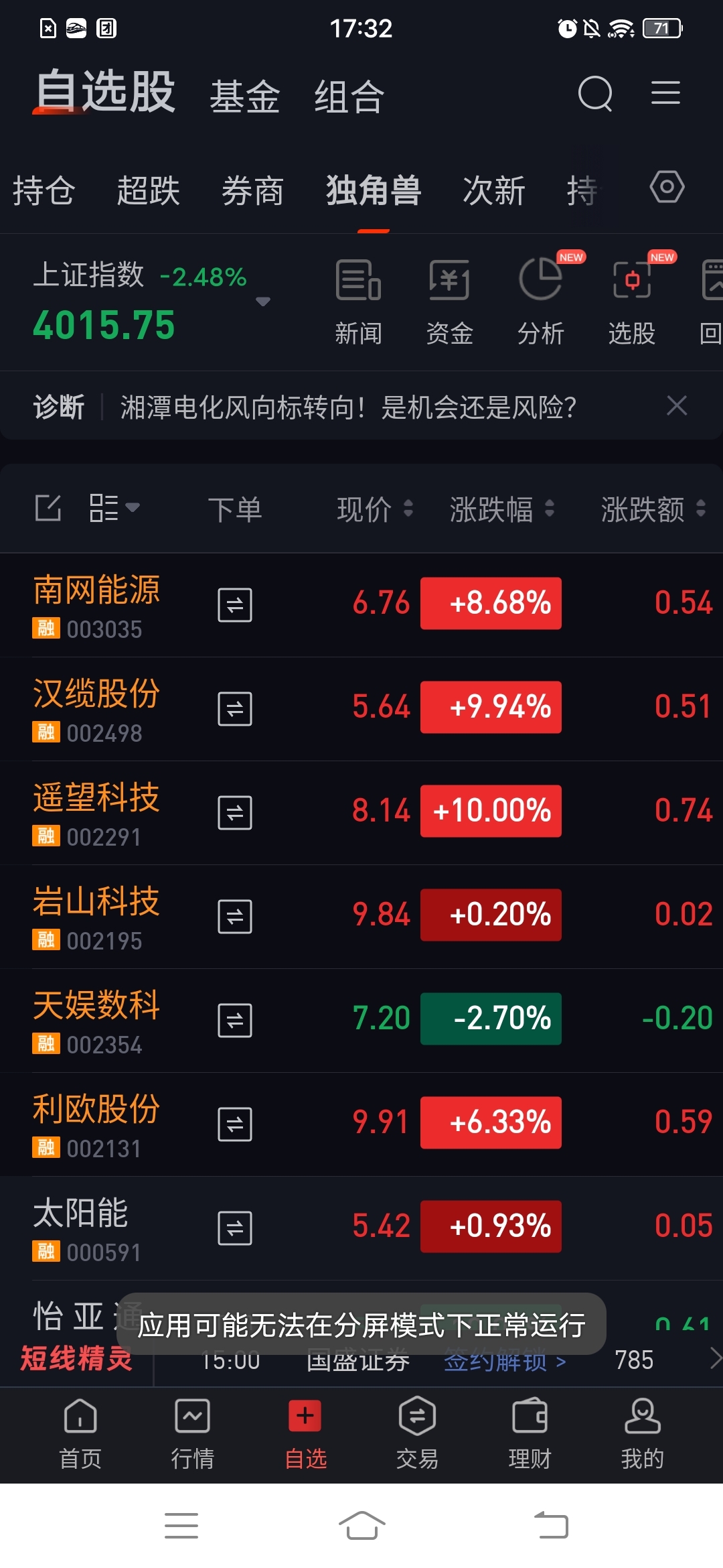 今天大盘疯狂杀跌,两市跌停123涨停44,持仓6支,2支涨停,不受大盘营销南网和利欧也有可能上板,希望明天大盘回暖,大家一起挣钱