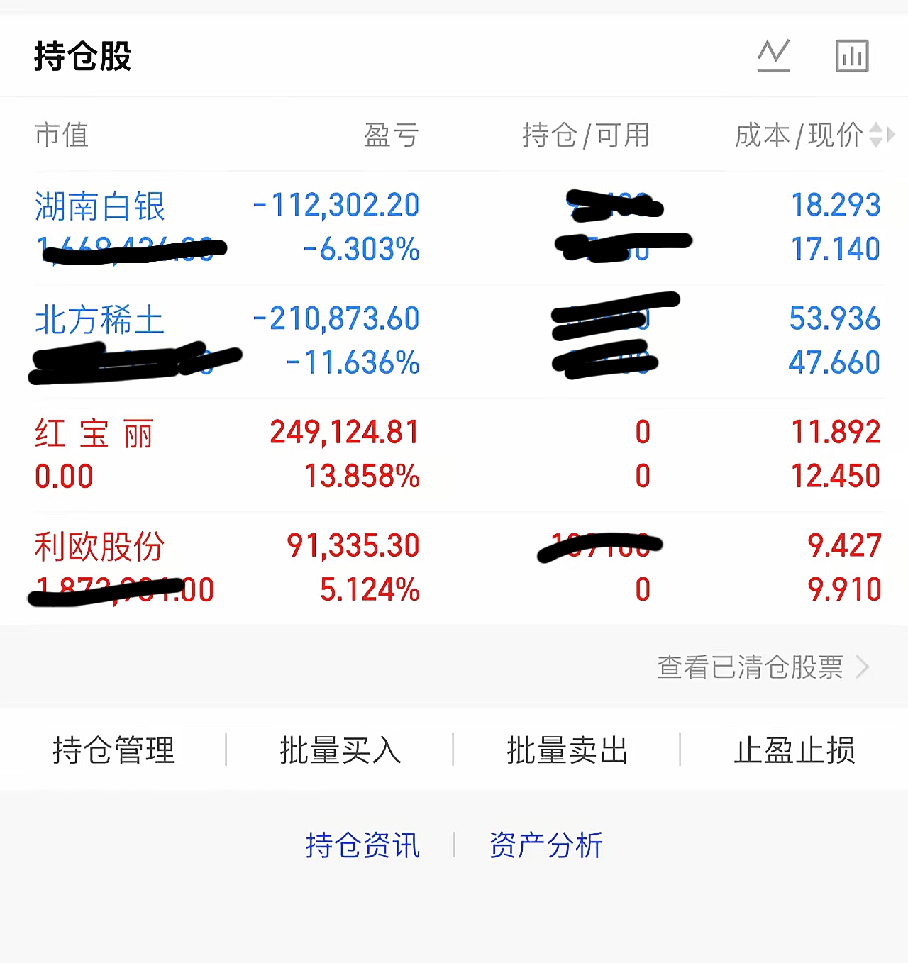 $利欧股份(SZ002131)$ $红 宝 丽(SZ002165)$ $湖南白银(SZ002716)$ 湖南白银,北方稀土 都格局拿过头了!由赚钱变亏损!继续完善交易系统!