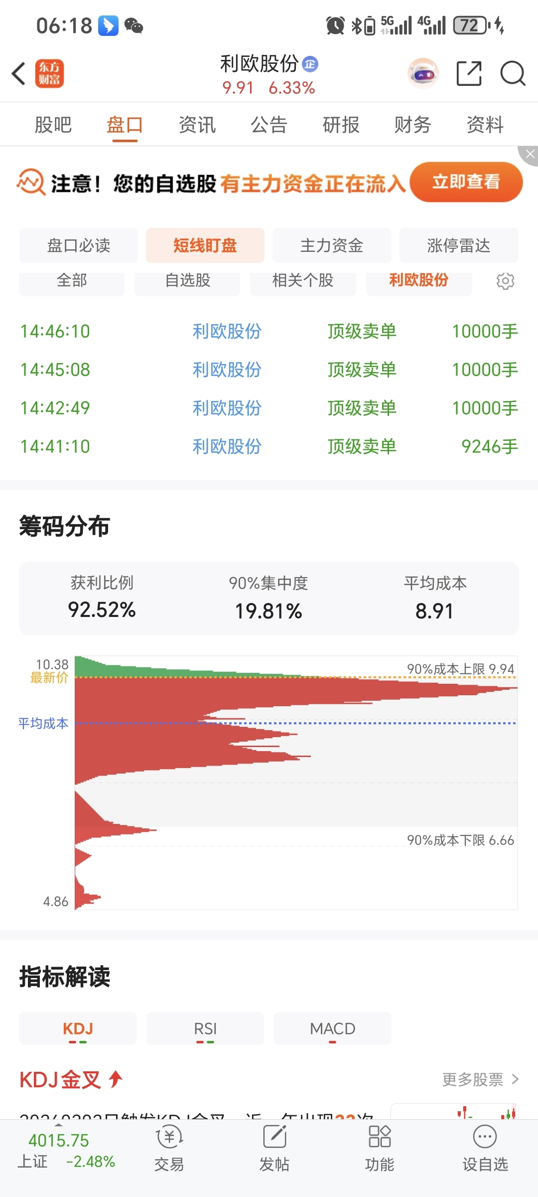 $利欧股份(SZ002131)$ 欧方无套牢,下方无获利,筹码基本都集中在股价下方一板位置,