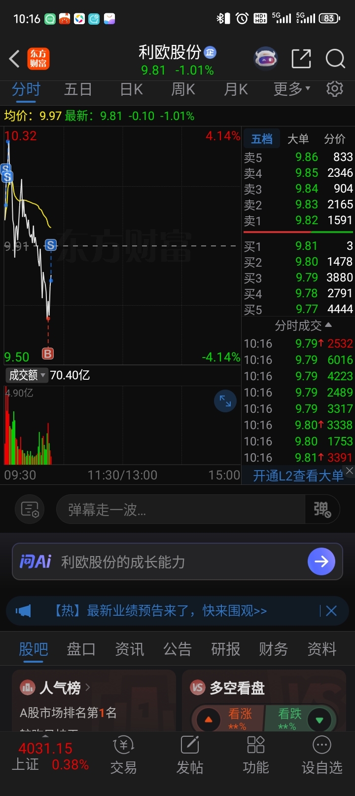 温馨提示: 1.根据《证券法》规定,禁止编造、传播虚假信息或者误导性信息,扰乱证券市场;2.用户在本社区发表的所有资料、言论等仅代表个人观点,与本网站立场无关,不对您构成任何投资建议。用户应基于自己的独立判断,自行决定证券投资并承担相应风险。《东方财富社区管理规定》