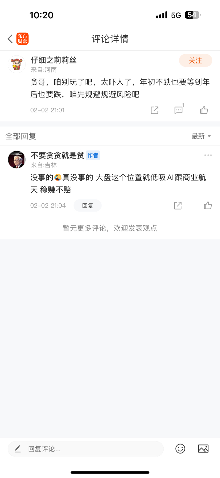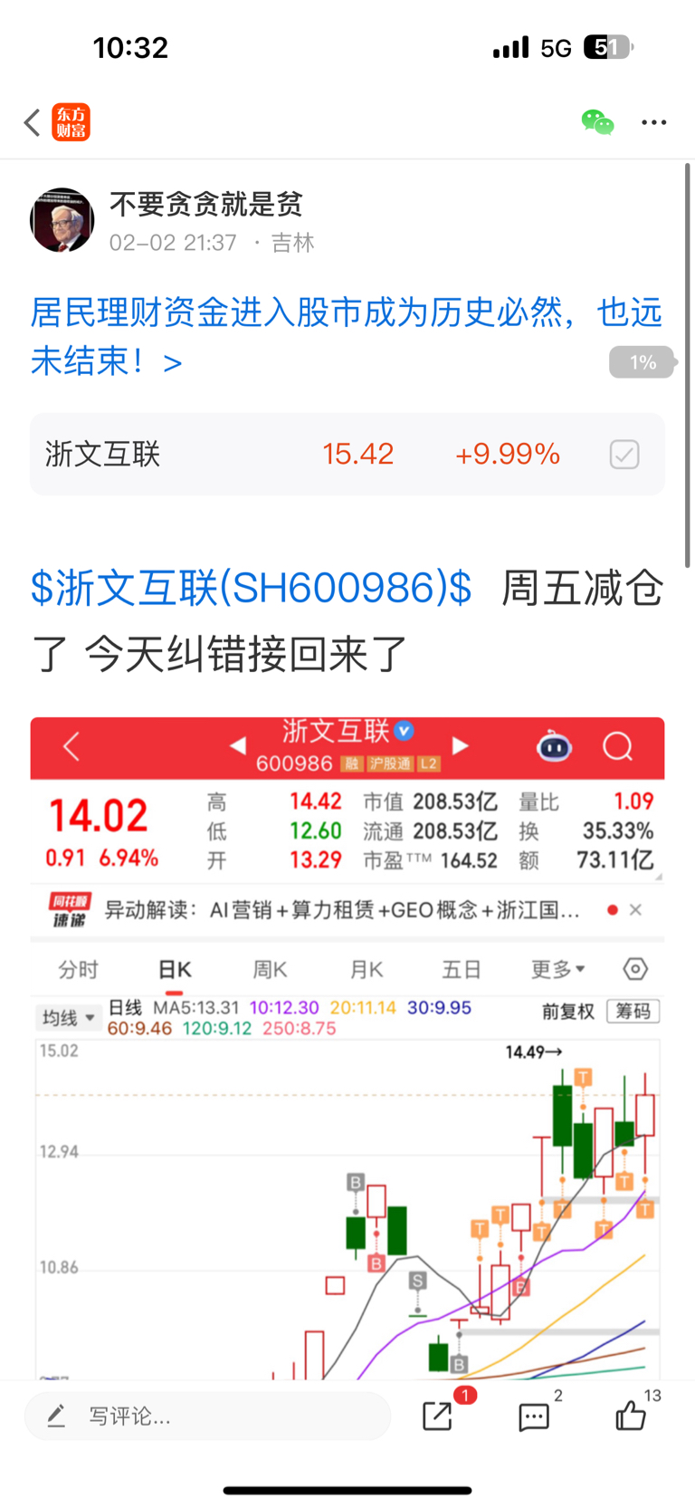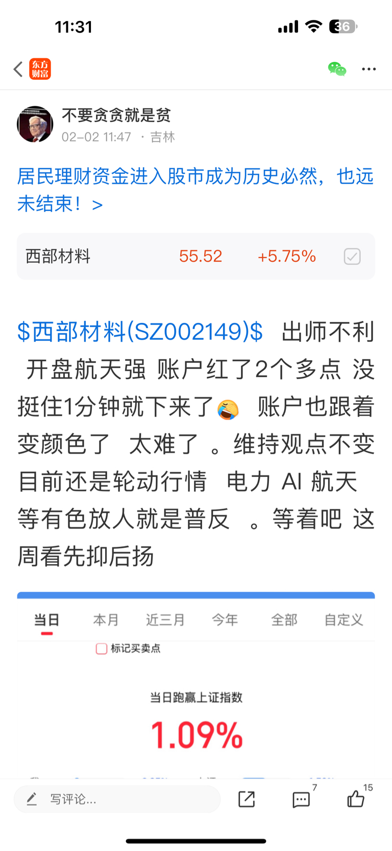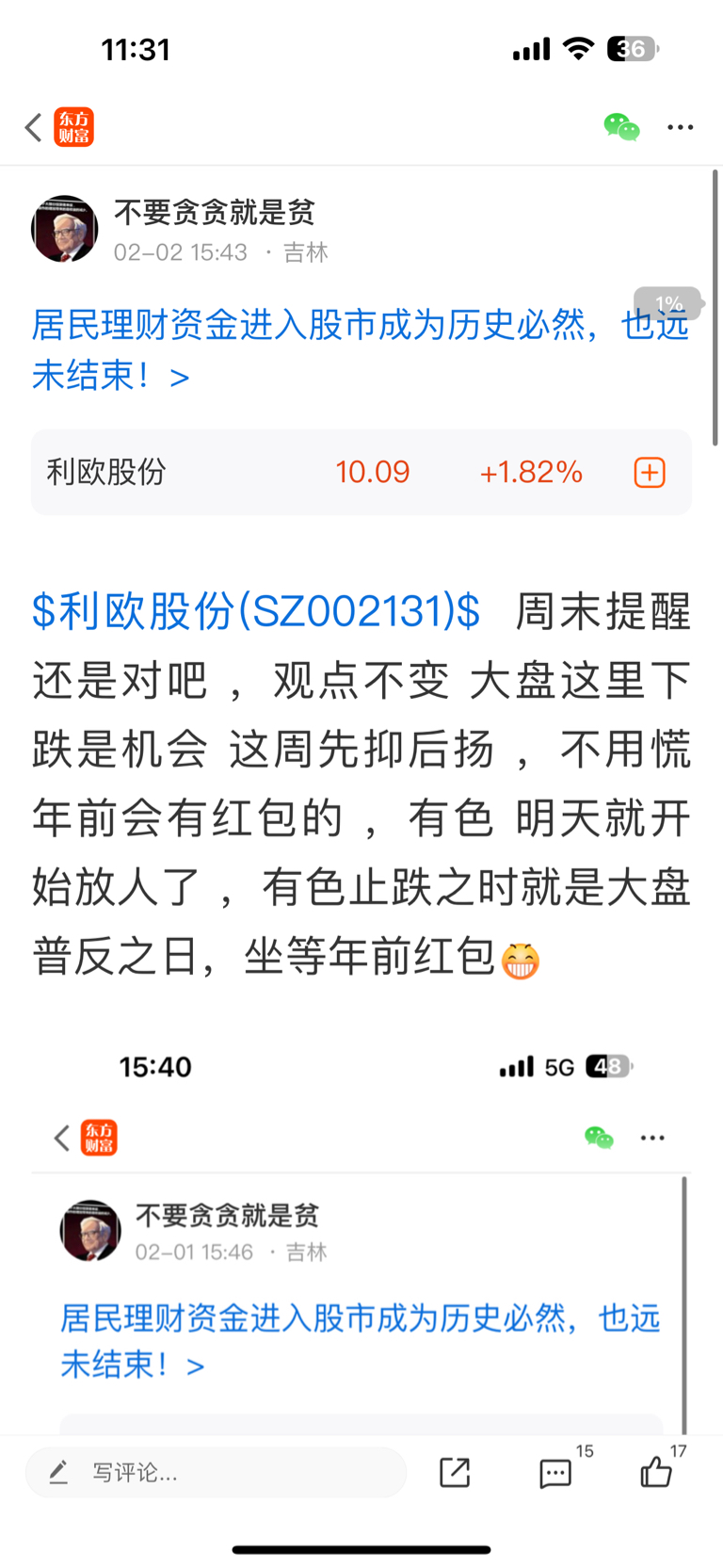 $利欧股份(SZ002131)$ 昨天大盘再不好的情况下我就说没事 而且一直就说两个板块 商业航天跟AI应用 今天应该都不错 年前的红包行情远远还没有结束 但是周五还是要小心一点因为有个谈判如果不成 会有个小波动 不过问题不大 。$航天发展(SZ000547)$ $浙文互联(SH600986)$
