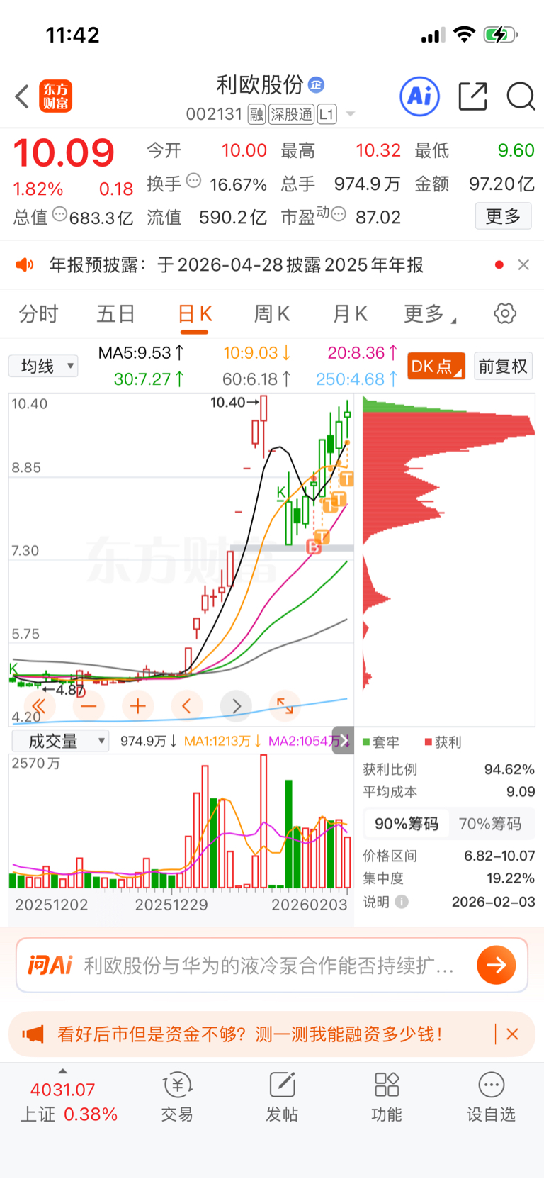 $利欧股份(SZ002131)$ 相信欧皇!奥力给!